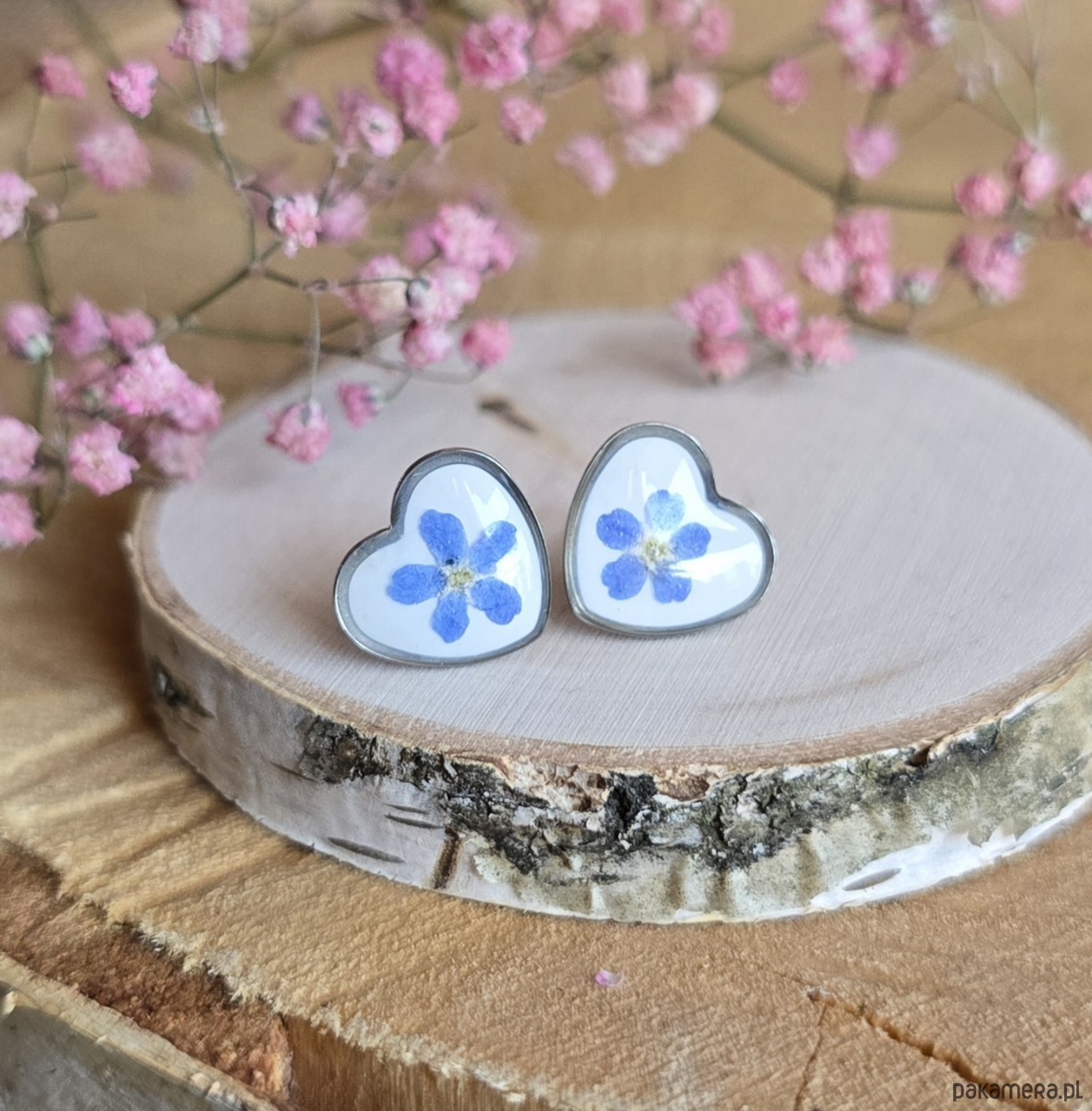 Oferuję Państwu unikalną biżuterię. Kolczyki są wykonane z suszonych kwiatów i żywicy epoksydowej. Biżuteria jest wspaniałym i oryginalnym prezentem na lata.