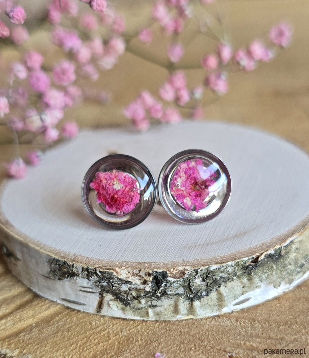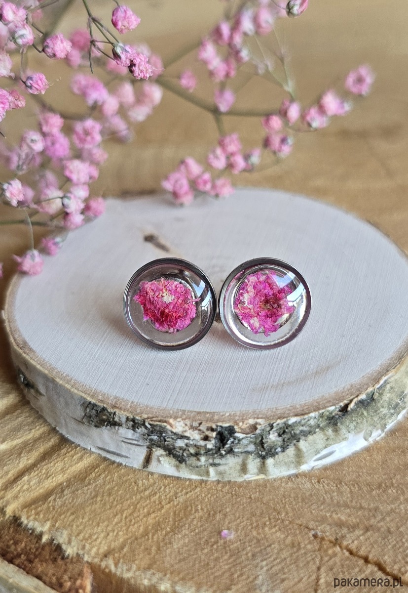 Oferuję Państwu unikalną biżuterię. Kolczyki są wykonane z suszonych kwiatów i żywicy epoksydowej. Biżuteria jest wspaniałym i oryginalnym prezentem na lata.