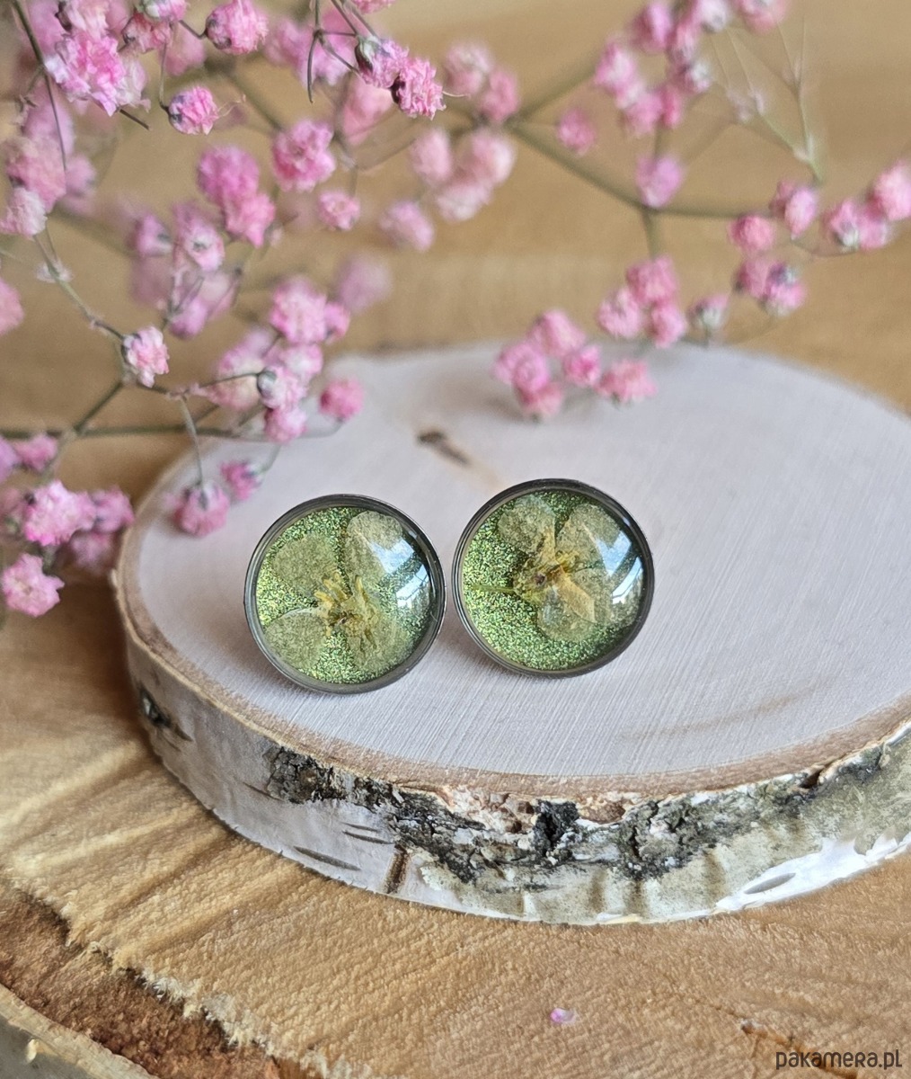 Oferuję Państwu unikalną biżuterię. Kolczyki są wykonane z suszonych kwiatów i żywicy epoksydowej. Biżuteria jest wspaniałym i oryginalnym prezentem na lata.