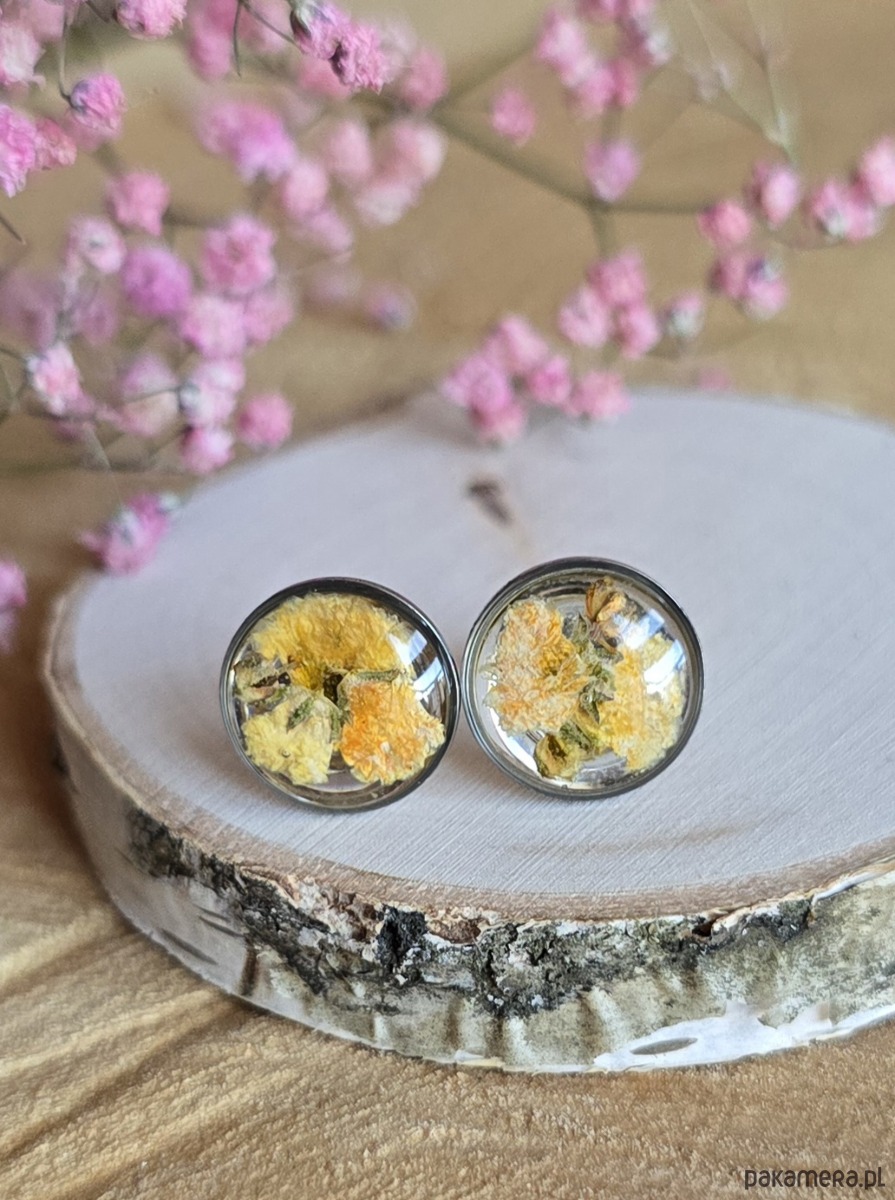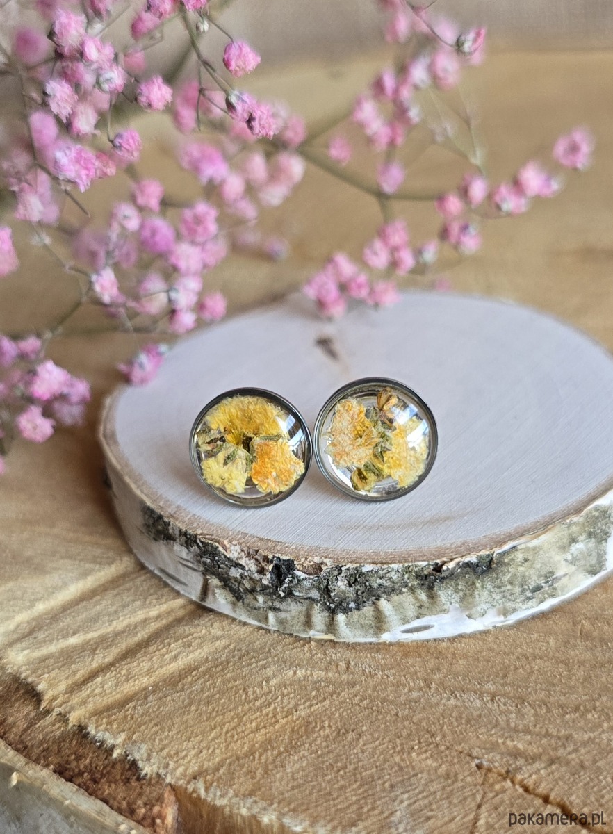 Oferuję Państwu unikalną biżuterię. Kolczyki są wykonane z suszonych kwiatów i żywicy epoksydowej. Biżuteria jest wspaniałym i oryginalnym prezentem na lata.