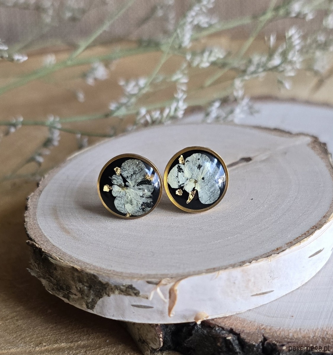 Oferuję Państwu unikalną biżuterię. Kolczyki są wykonane z suszonych kwiatów i żywicy epoksydowej. Biżuteria jest wspaniałym i oryginalnym prezentem na lata.