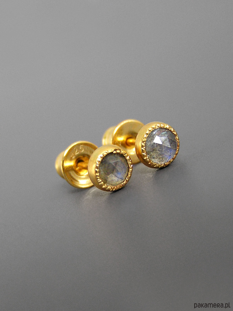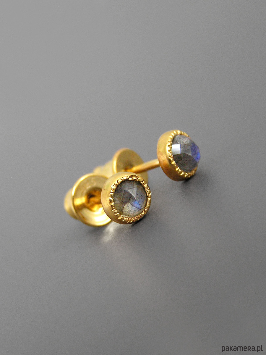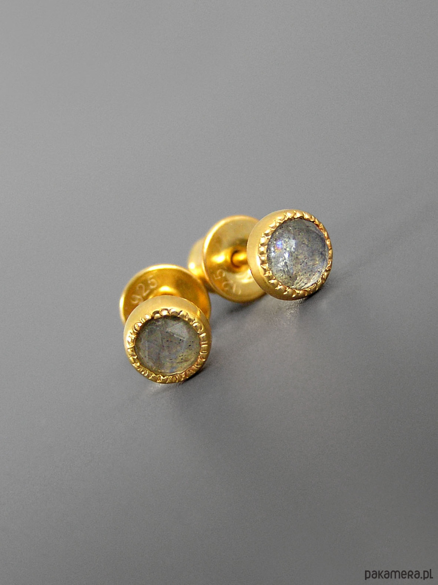Unikatowe maleńkie kolczyki wykonane ze srebra 925 z fasetowanymi labradorytami.
