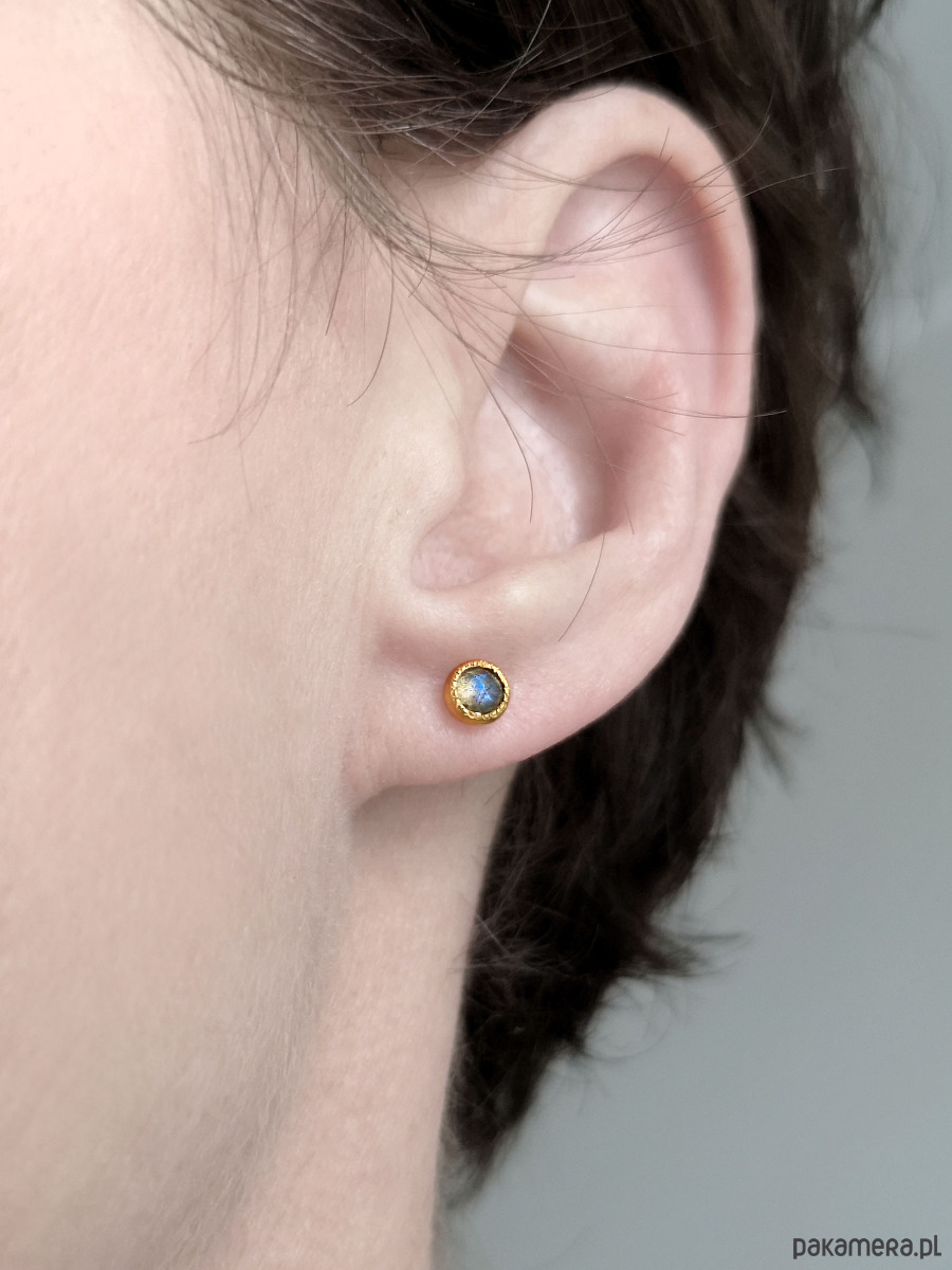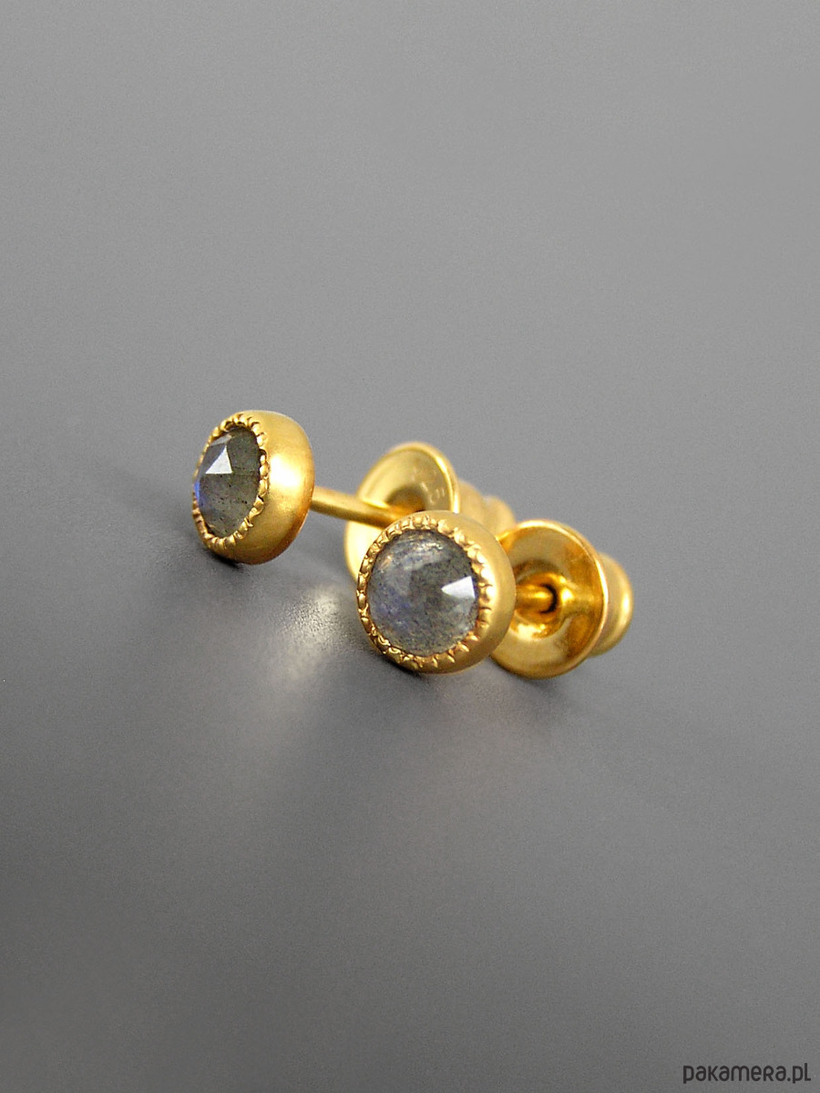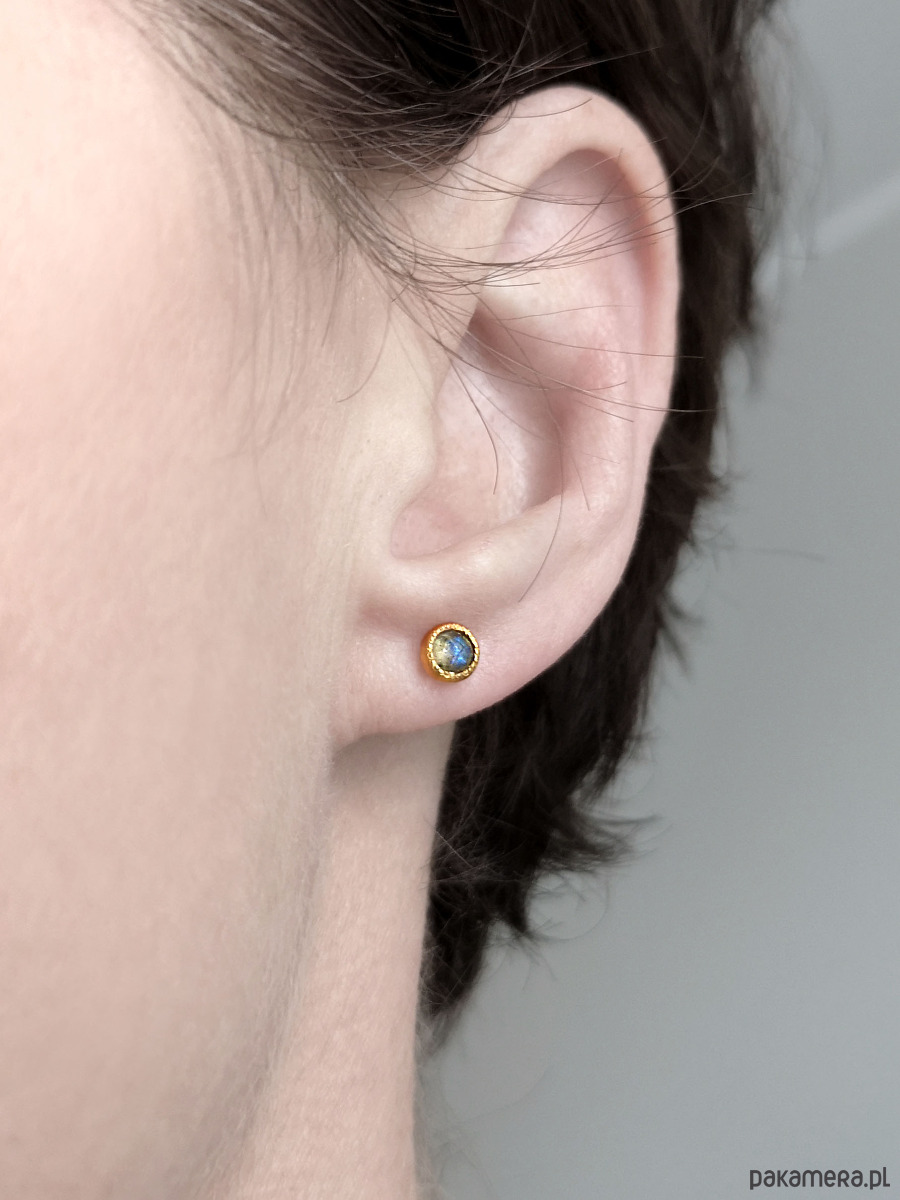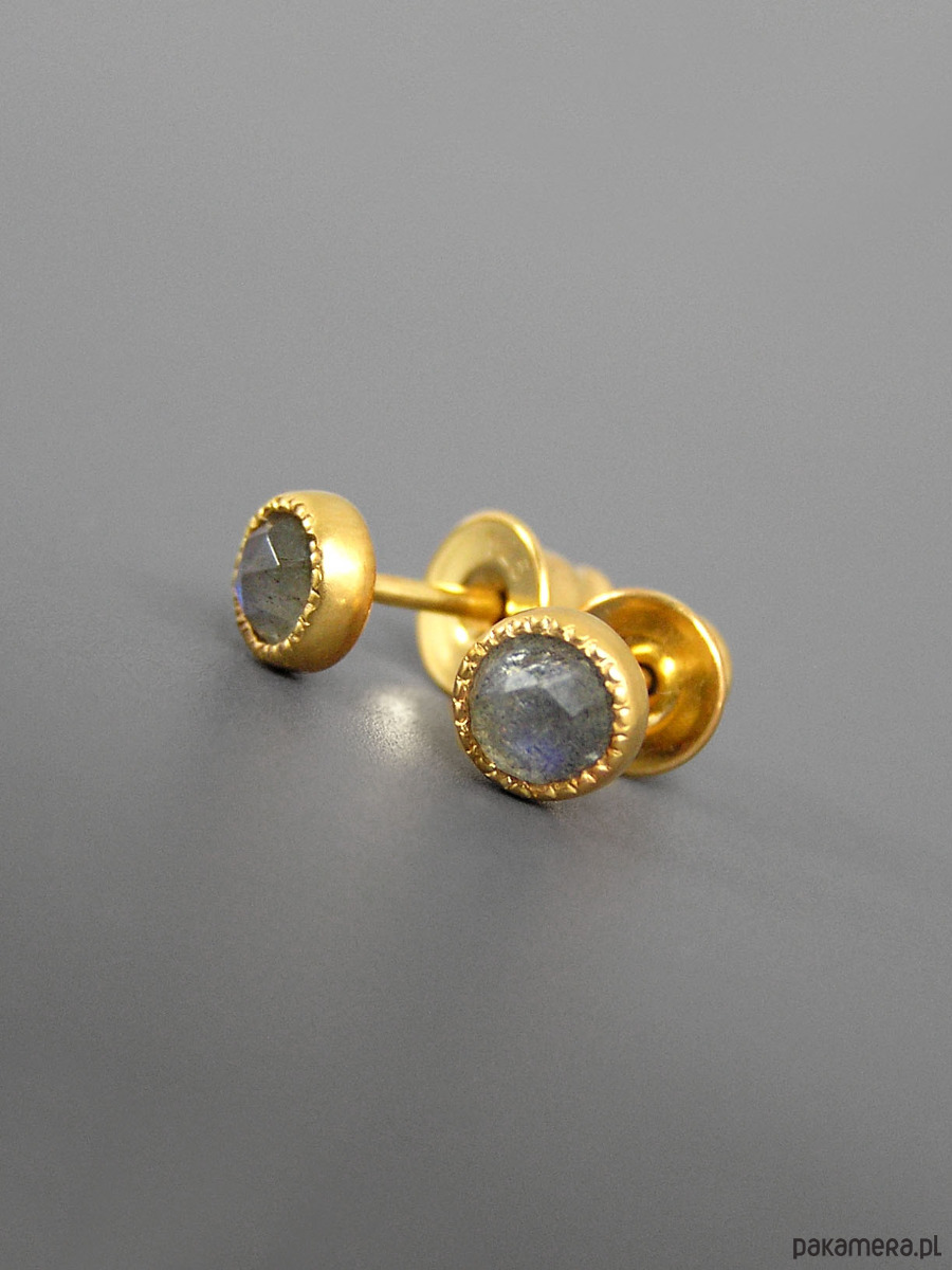 Unikatowe maleńkie kolczyki wykonane ze srebra 925 z fasetowanymi labradorytami.