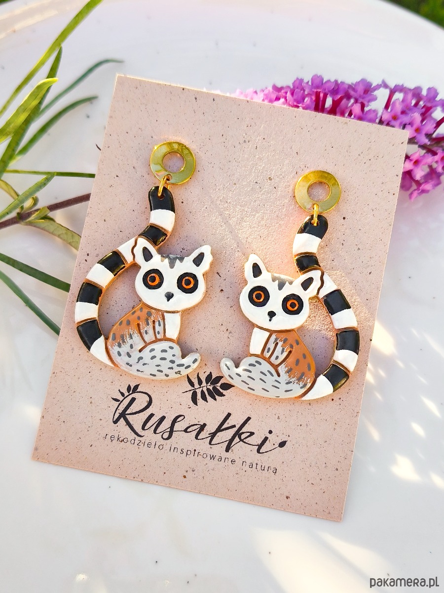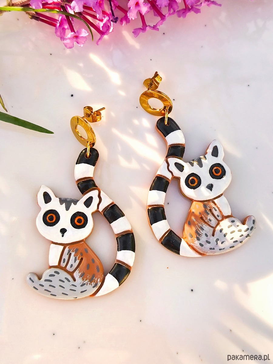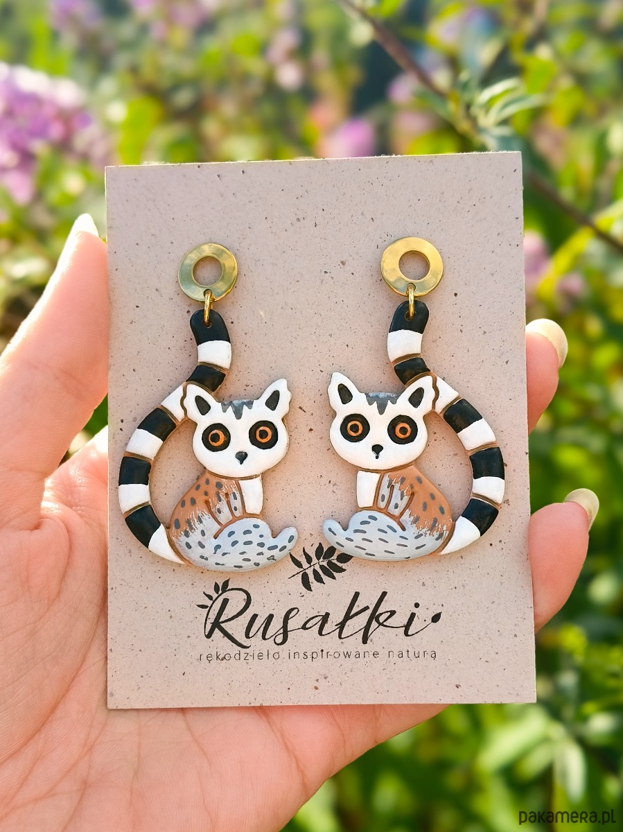 Kolczyki z lemurami, duże lekkie kolczyki z podobizną lemurów, boho