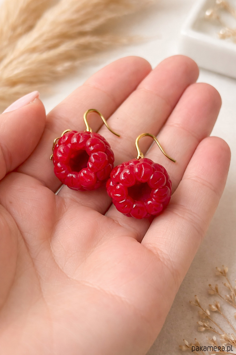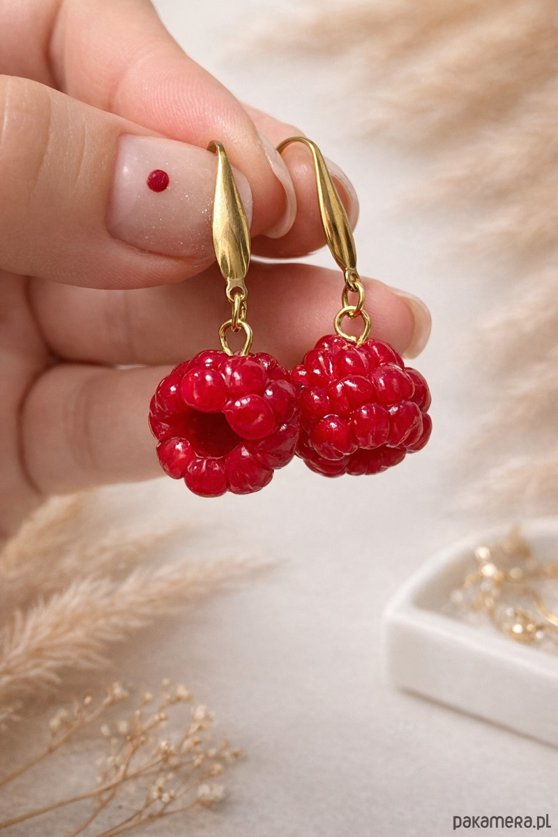 Wyjątkowe kolczyki w kształcie soczystych malin, wykonane ręcznie z najwyższą dbałością o detale. Każda malina została precyzyjnie uformowana, aby oddać naturalną strukturę i apetyczny wygląd owocu.