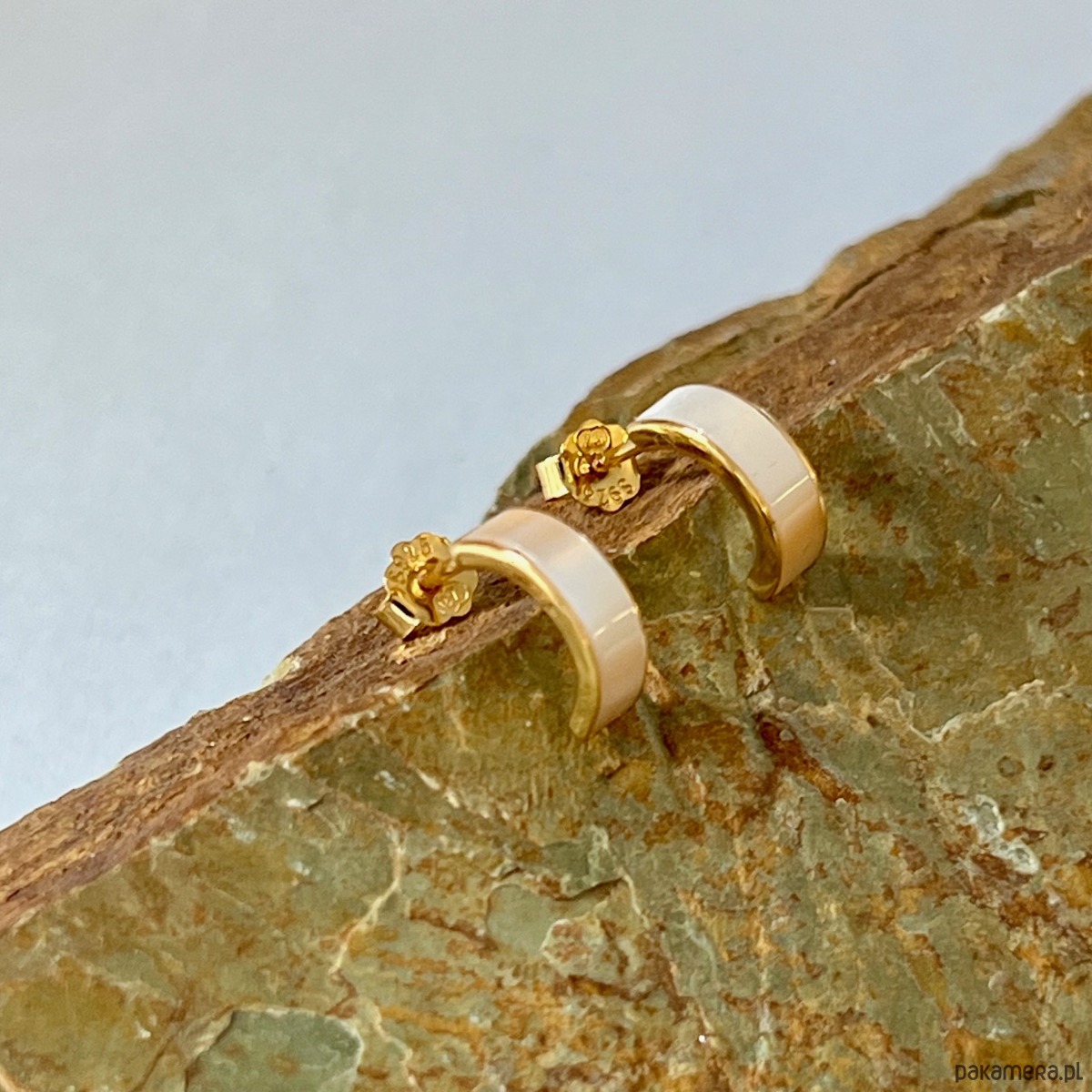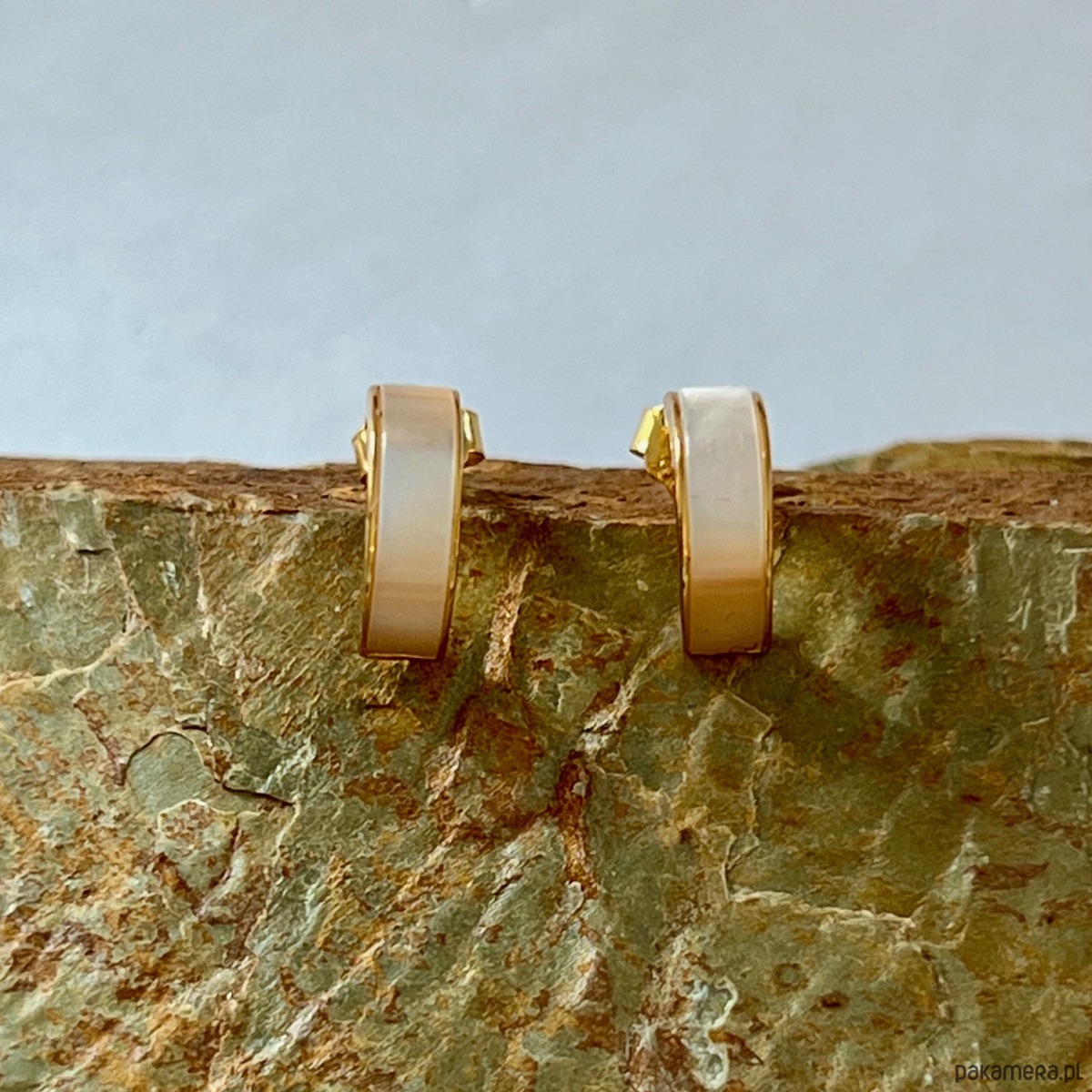 Kolczyki wykonane ze srebra próby 925, subtelnie pozłacane, urzekają delikatnym połyskiem masy perłowej. Jej miękka, szlachetna poświata dodaje biżuterii lekkości i elegancji, pięknie rozświetlając twarz.