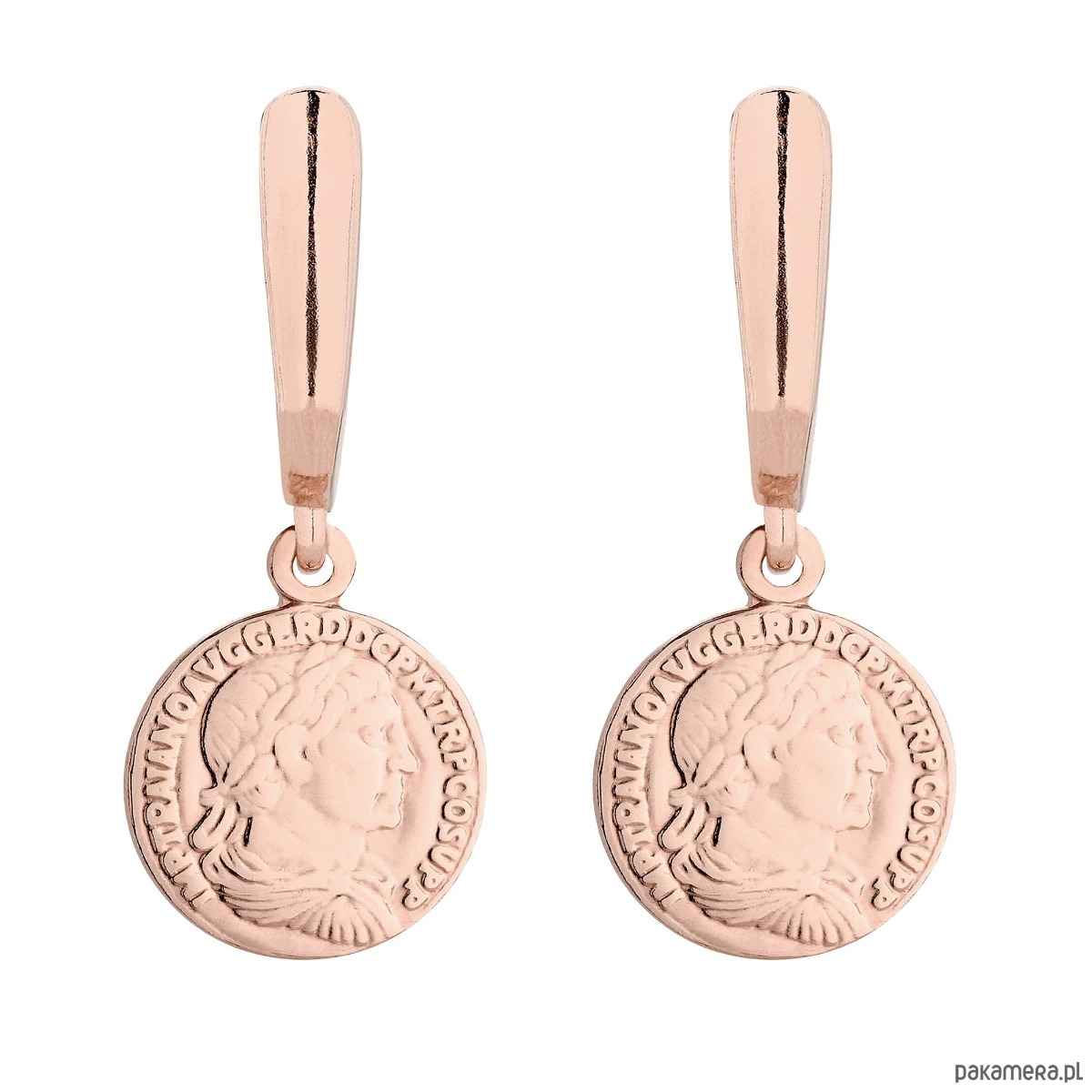Złote kolczyki z monetami. Zapinane na bigle angielskie. Całość wykonana ze srebra 925 powlekanego 18 karatowym różowym złotem.