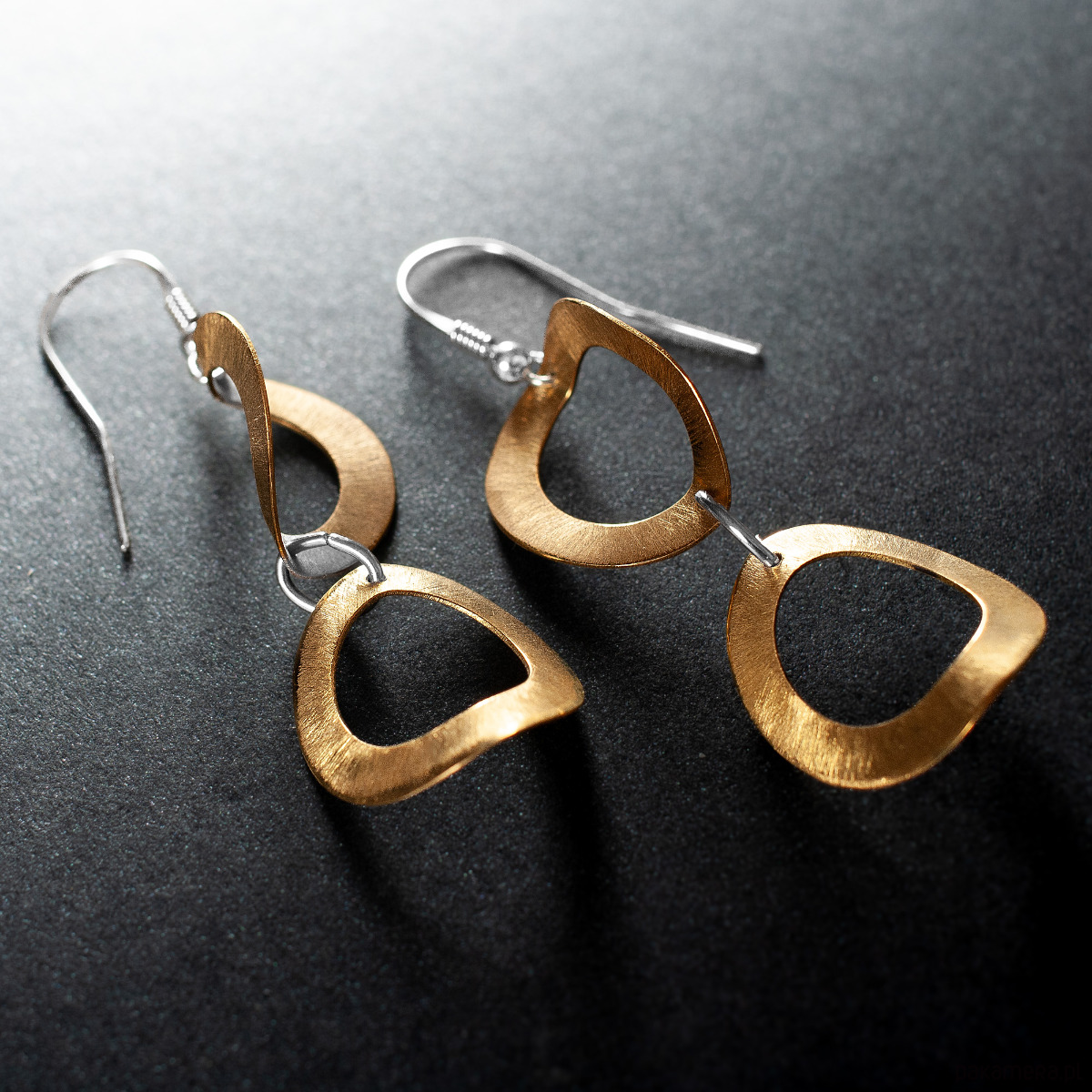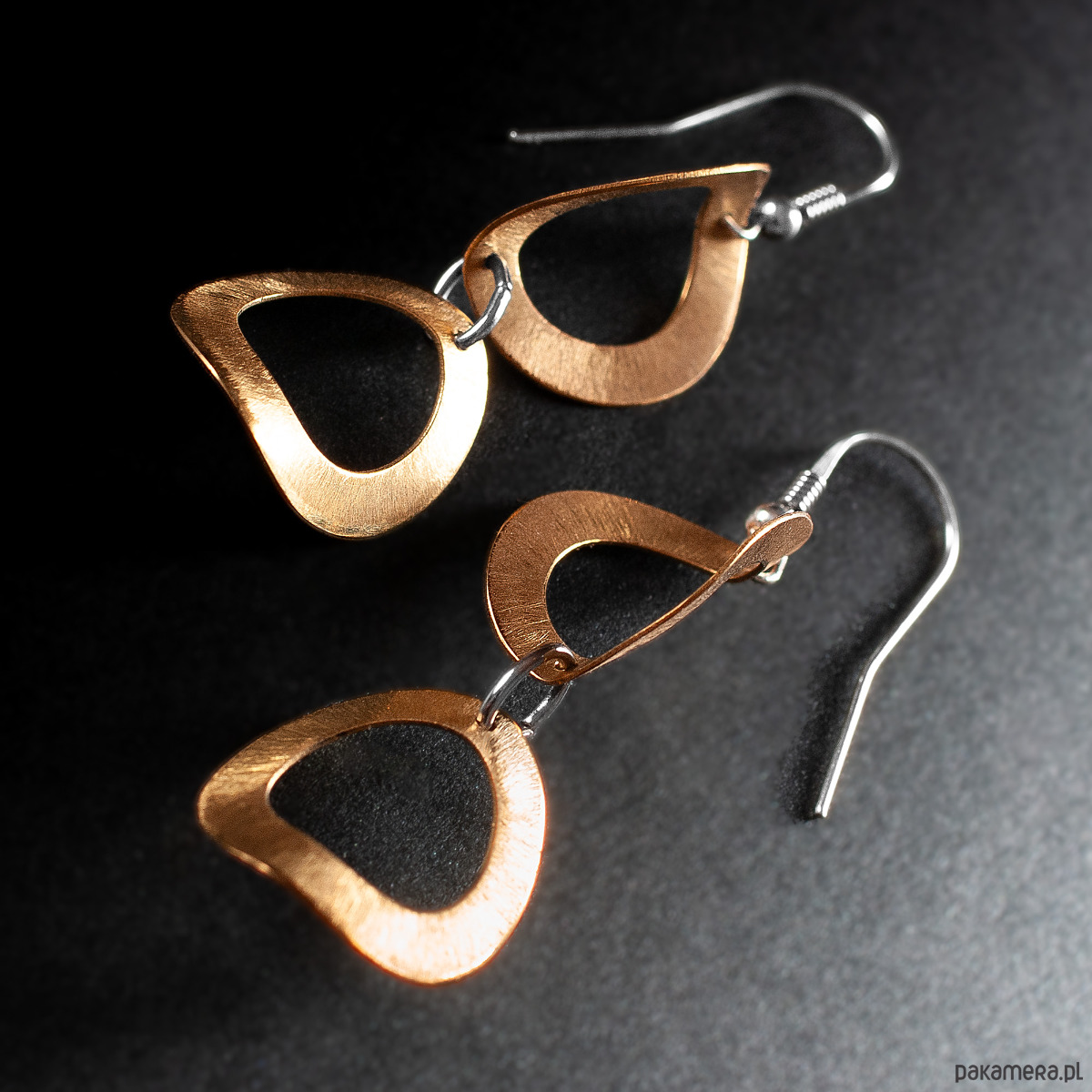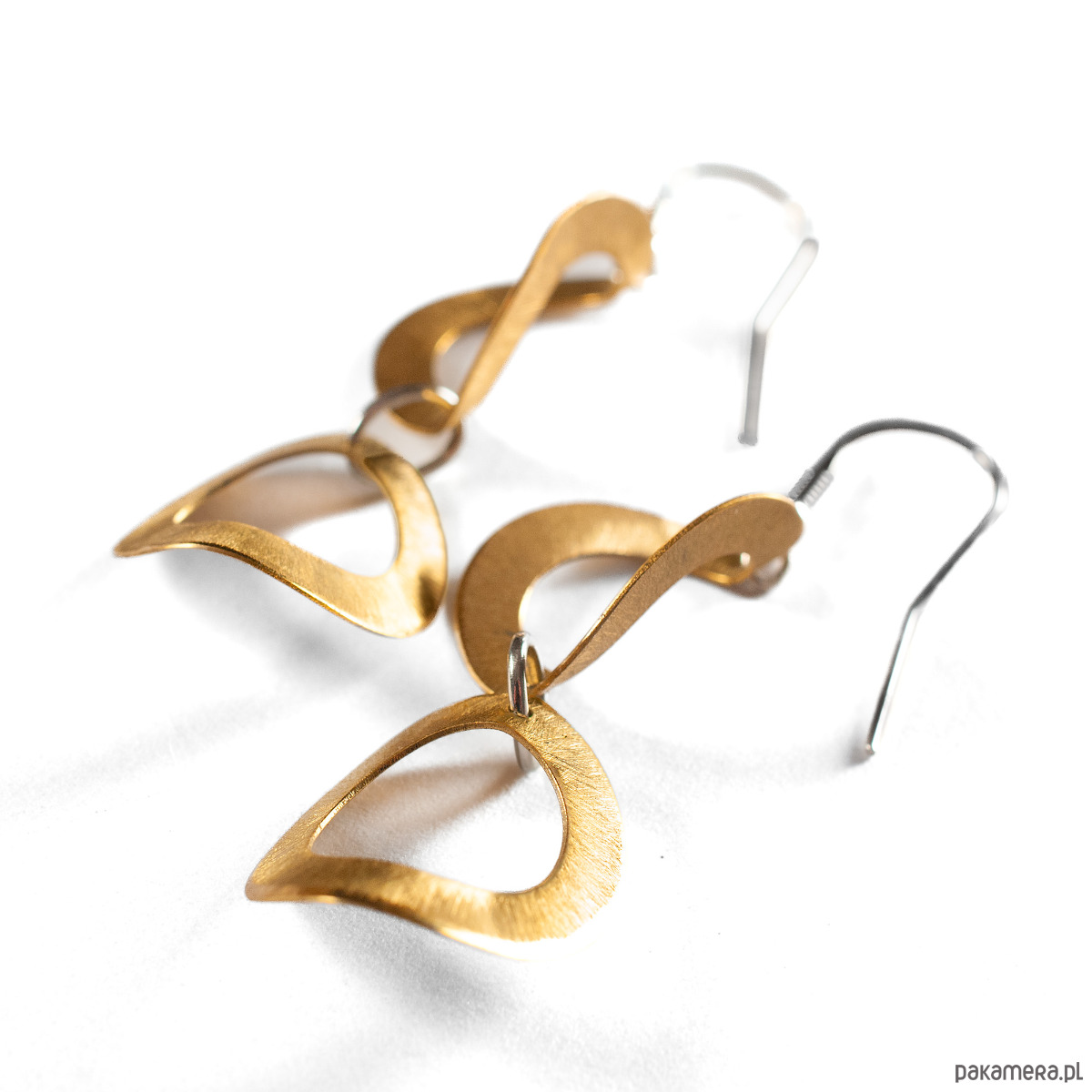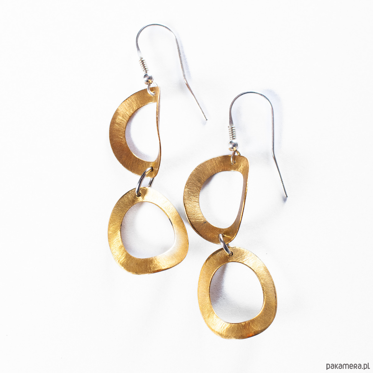 Kolczyki z kolekcji PRZEDWIOŚNIE z mosiądzem i srebrem 925. Ręcznie kształtowane i satynowane okręgi połączone są ze sobą i z biglem w sposób swobodny, przez co delikatnie "tańczą" i połyskują przy każdym ruchu głowy. Długość kolczyka z biglem ~ 5,5 cm. Kolczyki wykonane ręcznie według własnego projektu w pracowni Anillo. Biżuterię przesyłamy w eleganckim kartoniku.
