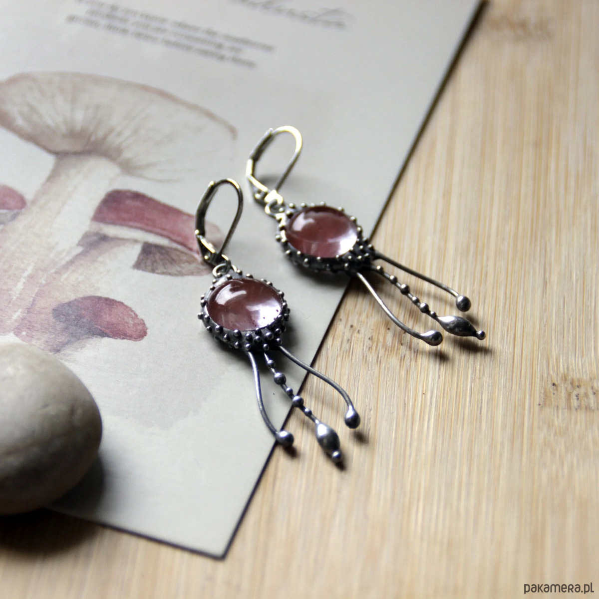 Kolczyki z motywem meduz z kwarcem arbuzowym prezent inspirowany morzem