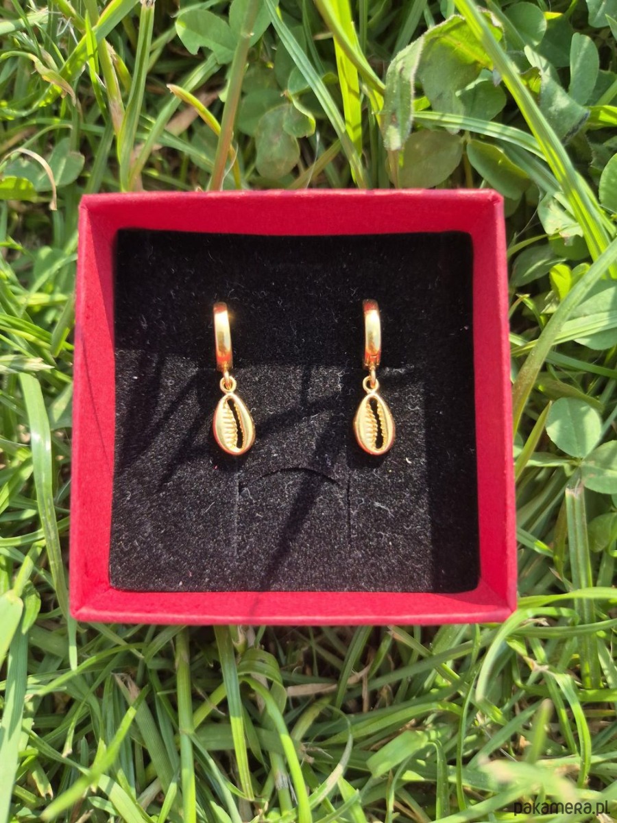 Kolczyki z muszelkami z pozłacanego srebra, bigle angielskie