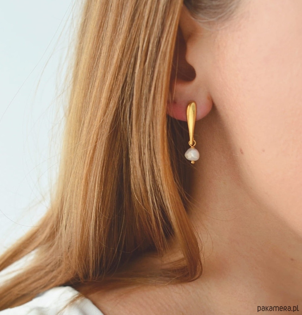 Kolczyki z naturalną perłą i podłużnym zapięciem