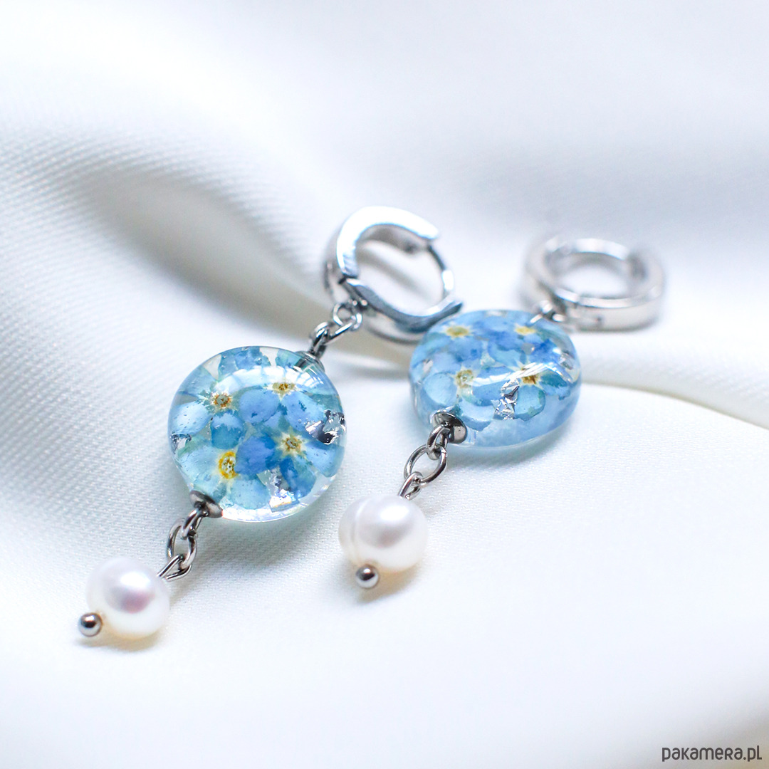 Kolczyki z niezapominajkami i perłami