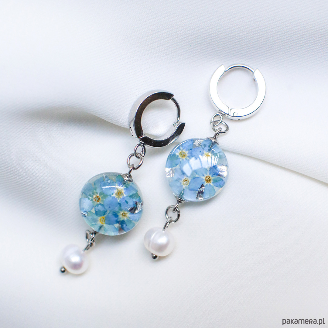 Kolczyki z niezapominajkami i perłami