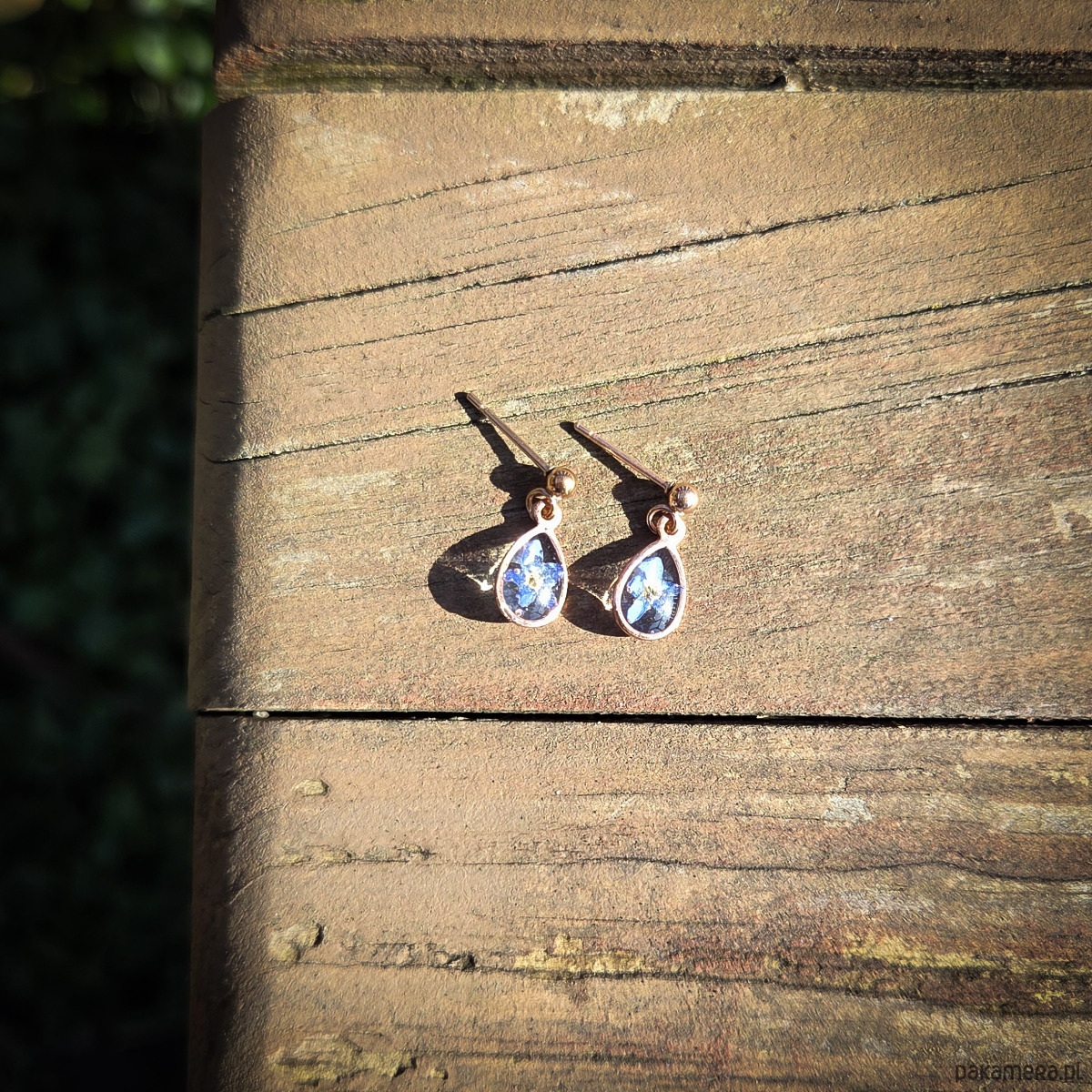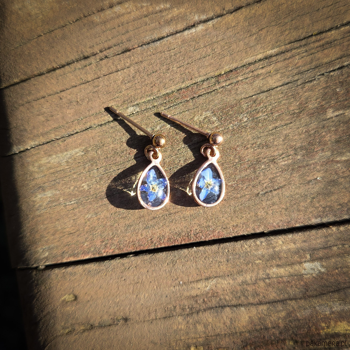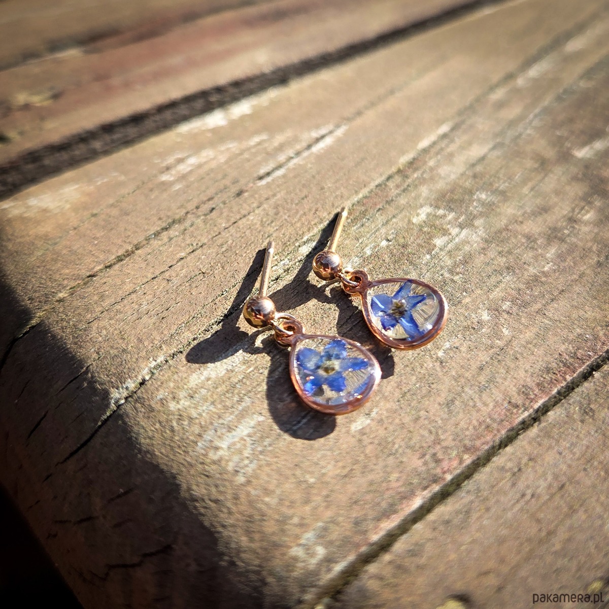 Kolczyki z żywicy epoksydowej z niezapominajkami.