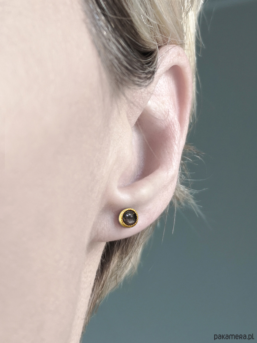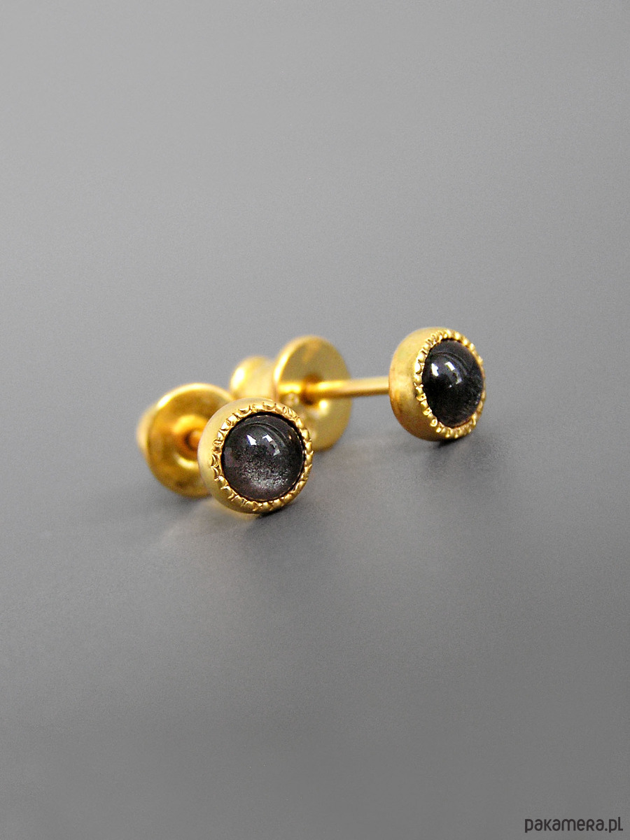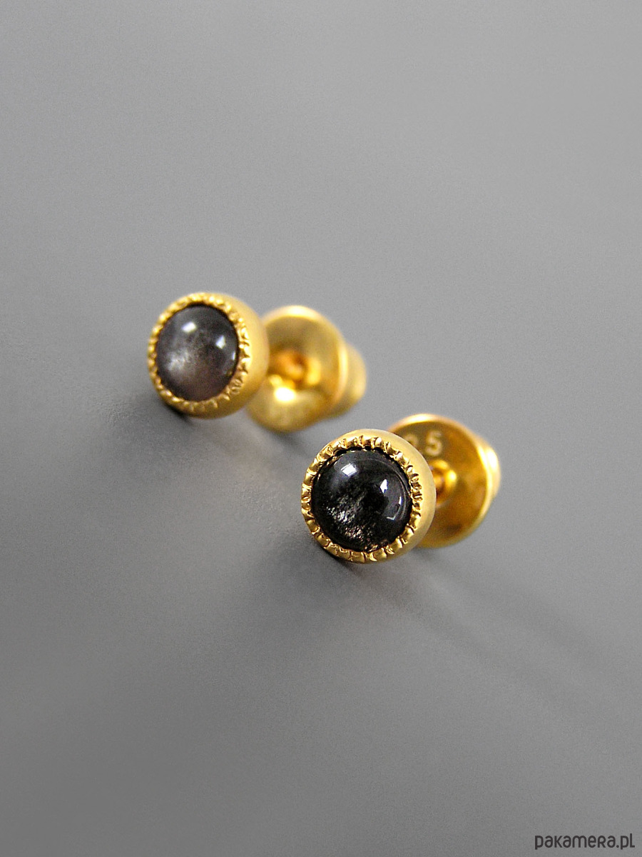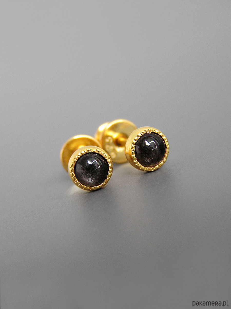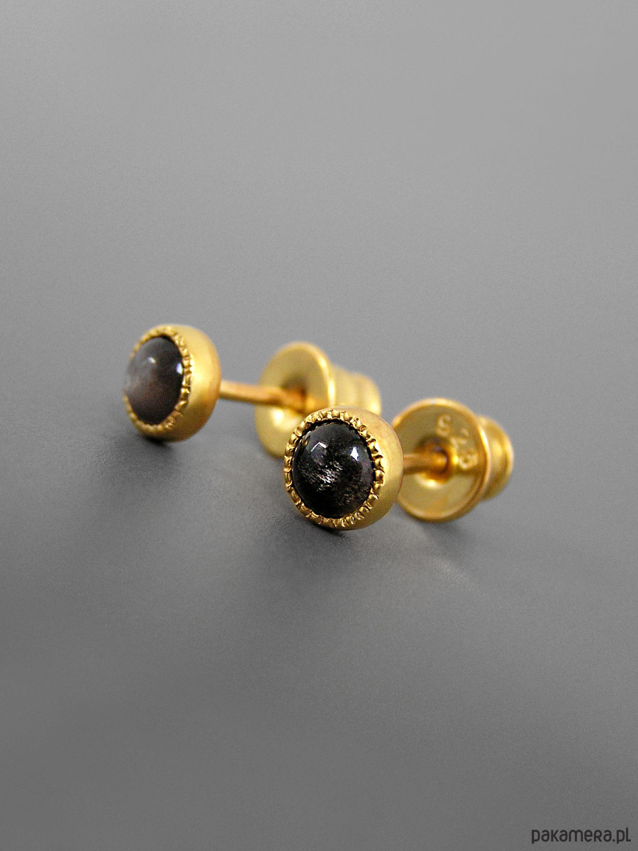 Kolczyki z obsydianem, srebro pozłacane