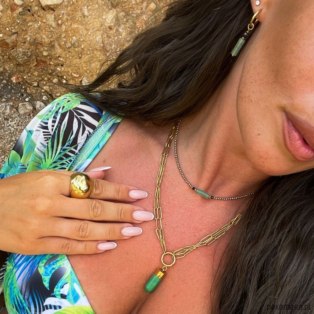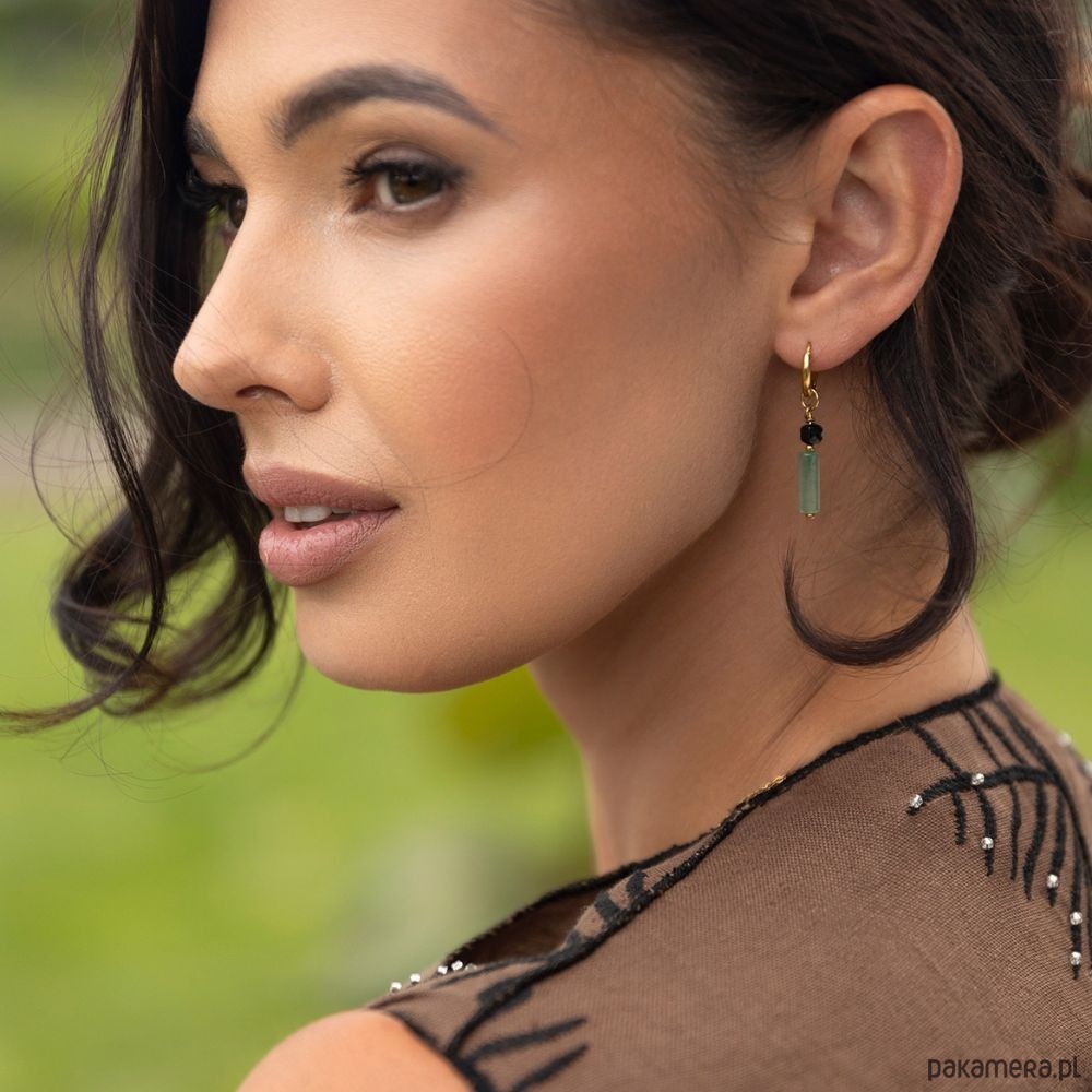 Poznaj naszą nową wyjątkową propozycję kolczyków. Zawieszka kolczyków wykonana jest jest z Awenturynu, Czarnego Turmalinu oraz Hematytu metalizowanego na złoto.