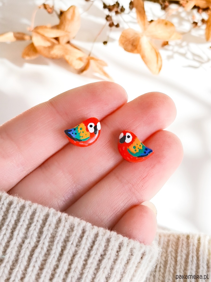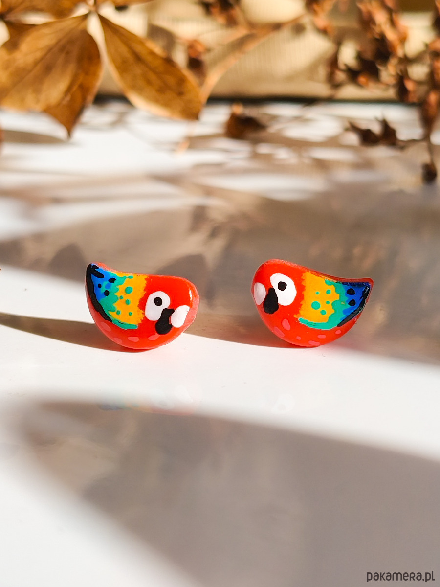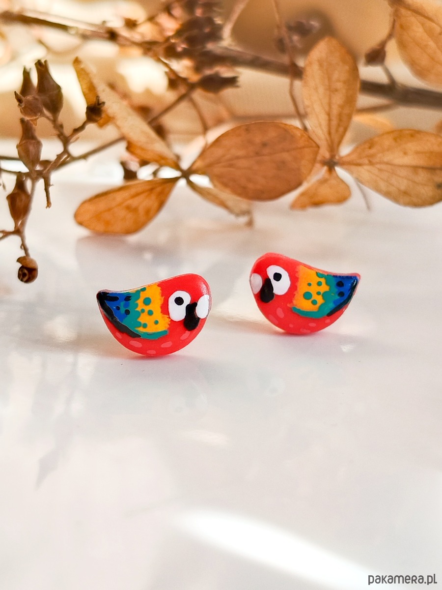 Kolczyki z papugami, papuga ara, biżuteria dla podróżnika, tropikalne