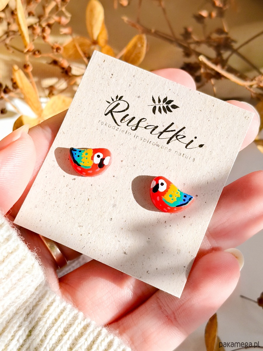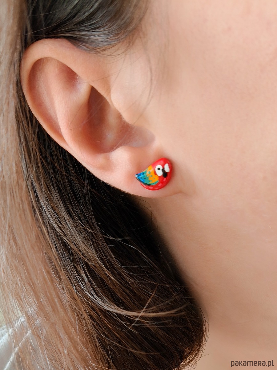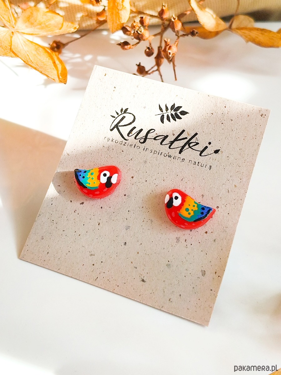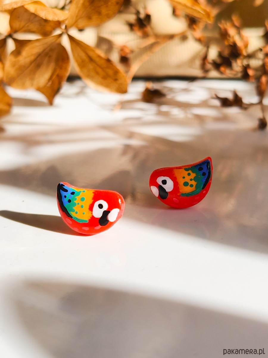 Kolczyki z papugami, papuga ara, biżuteria dla podróżnika, tropikalne