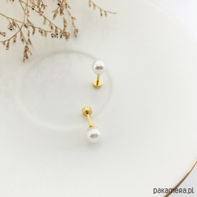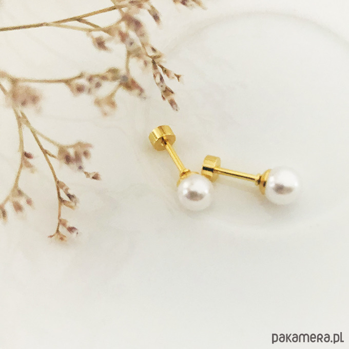 Kolczyki z perełkami, kolczyki perły , złote sztyfty