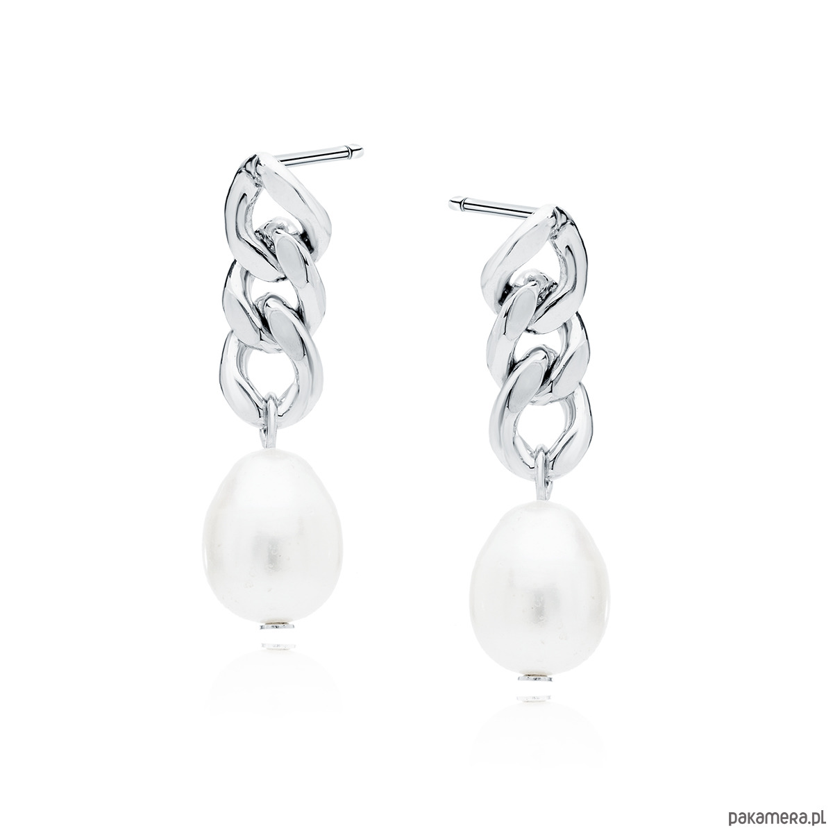Kolczyki z perłą łańcuch srebro 925 MODERN VINTAGE