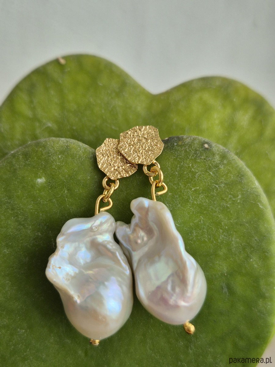 Kolczyki z perłami barokowymi, pozłacane srebro