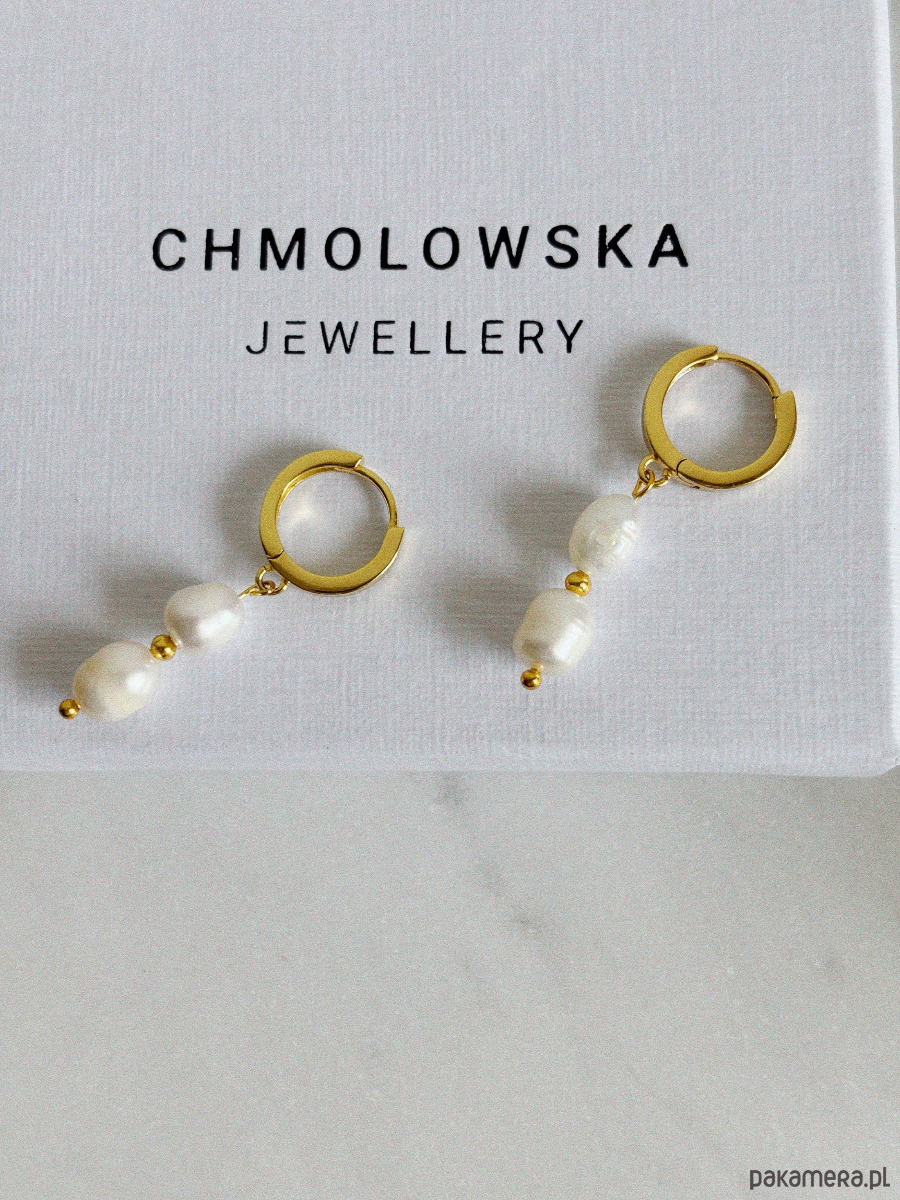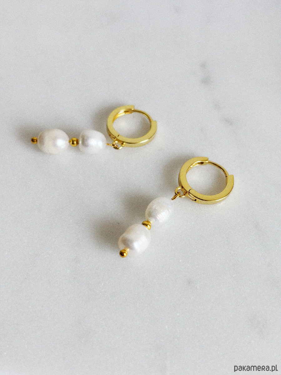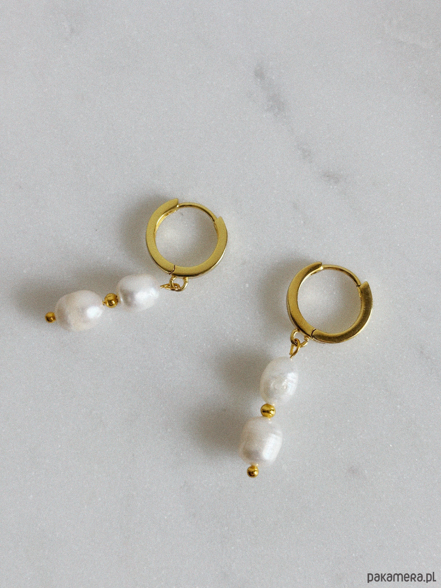 Kolczyki są wykonane z zapięć z mosiądzu pozłacanego 18k złotem oraz perły.