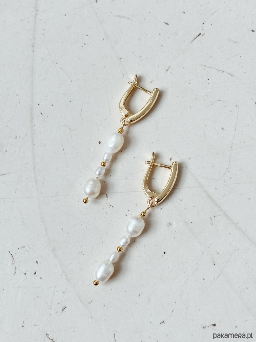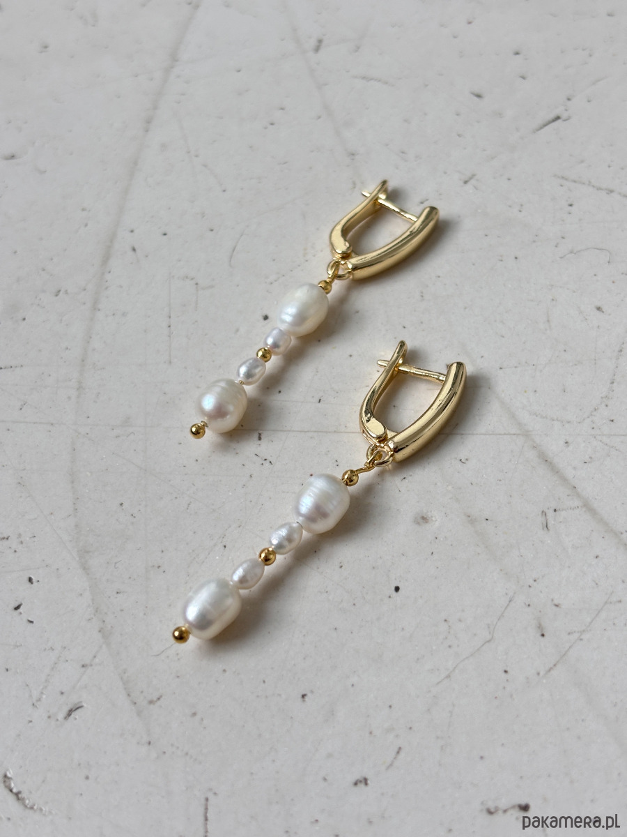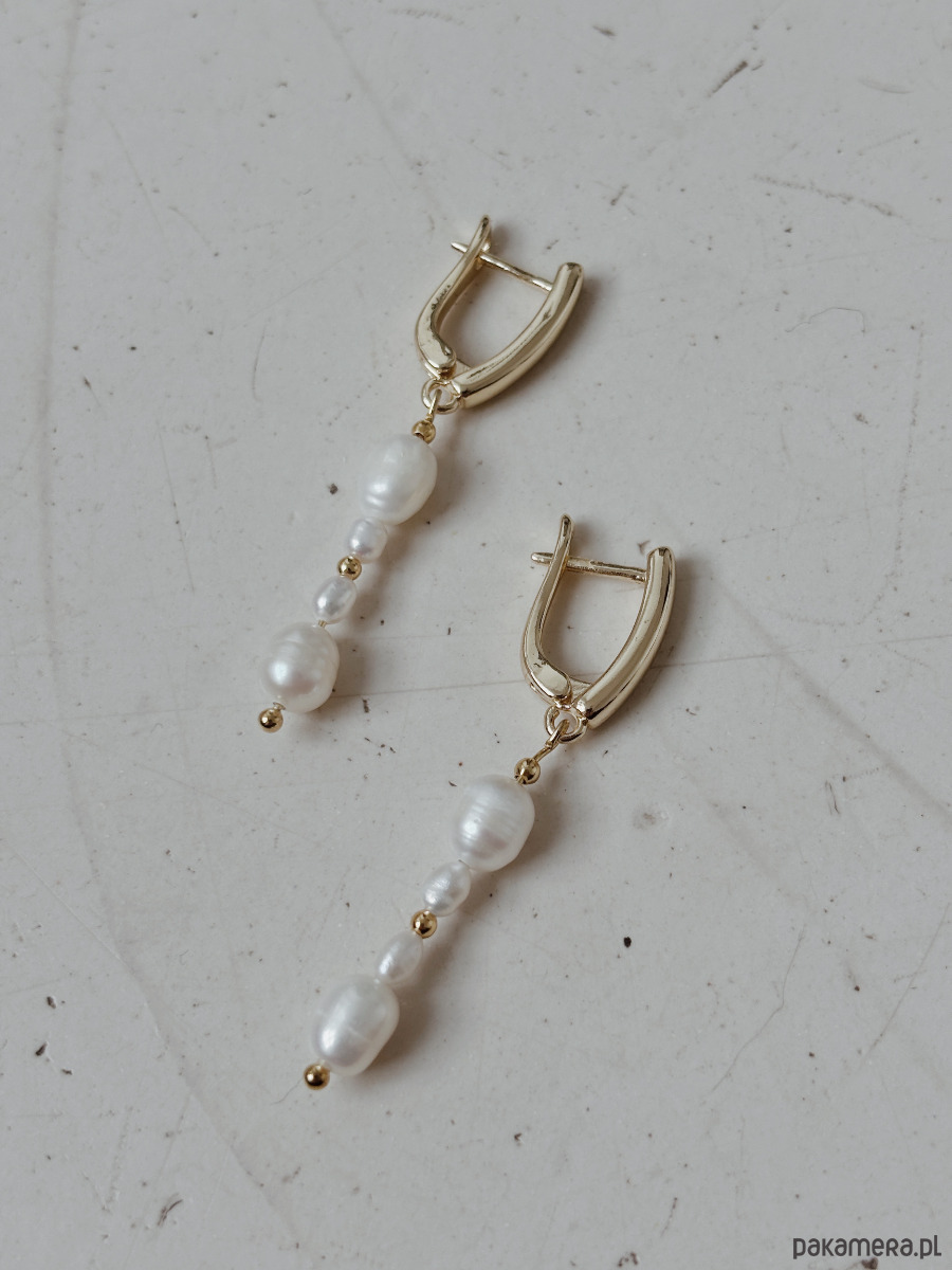 Kolczyki są wykonane z zapięć z mosiądzu pozłacanego 18k złotem i pereł naturalnych.