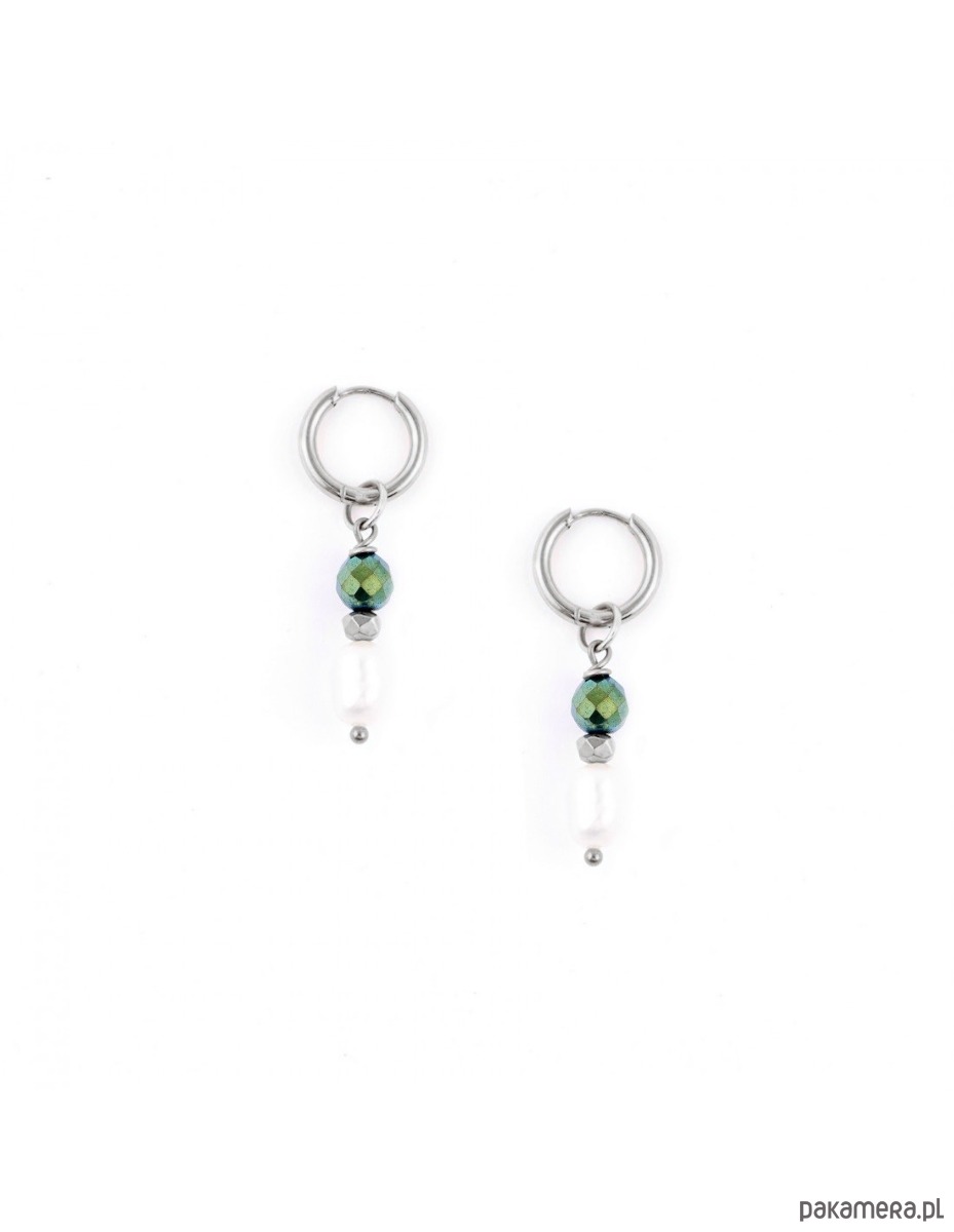 Kolczyki z Perłami i szmaragdowymi Hematytami Srebrna stal szlachetna