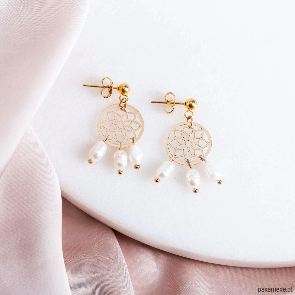 Kolczyki z antyalergicznej, pozłacanej stali szlachetnej z perłami naturalnymi.