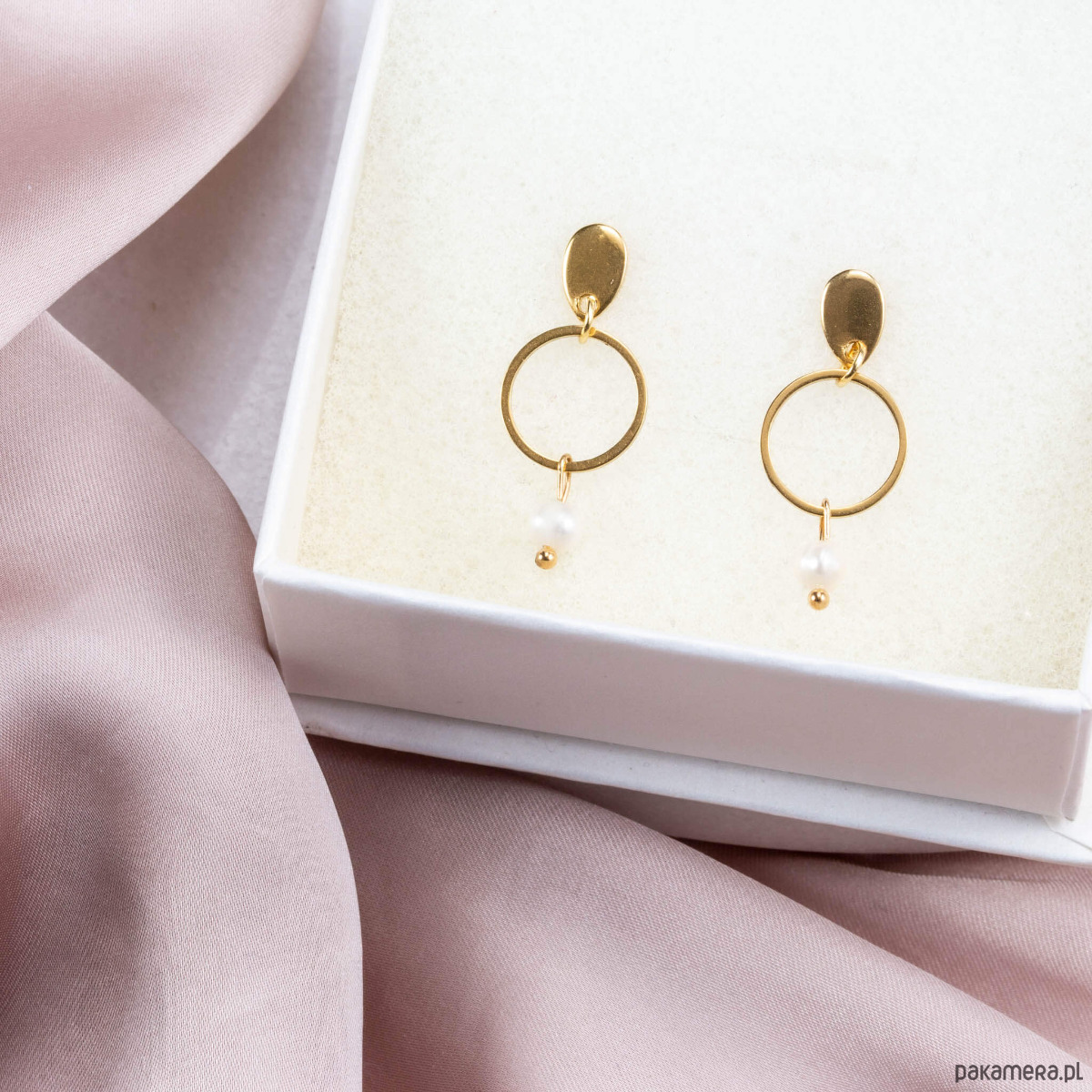 Kolczyki pozłacanej stali chirurgicznej perłami naturalnymi