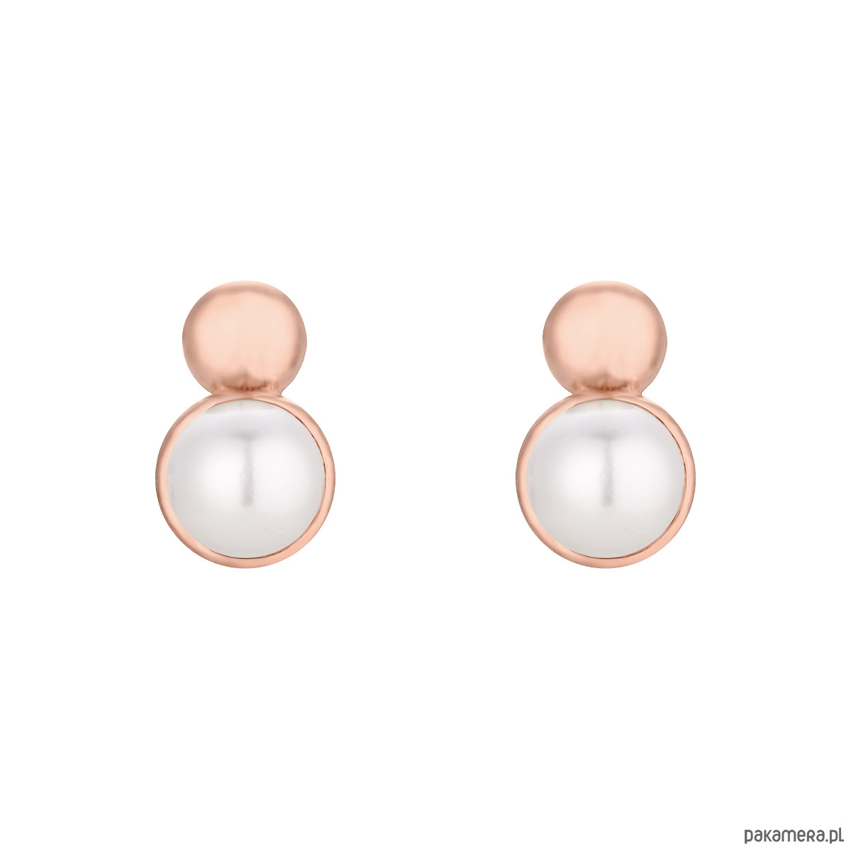Złote kolczyki z perłami. Całość wykonana ze srebra 925 powlekanego 18 karatowym różowym złotem. Zapinane na sztyft. Kolczyki posiadają zapięcia (baranki).