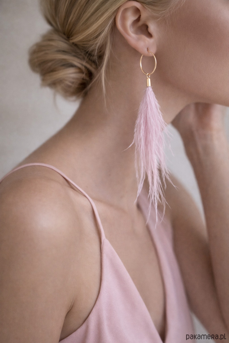 Kolczyki zostały wykonane z naturalnych strusich piór. Mimo pozornej delikatności piór wykonane z nich kolczyki są niezwykle trwałe i wytrzymałe. Idealne na specjalne okazje.