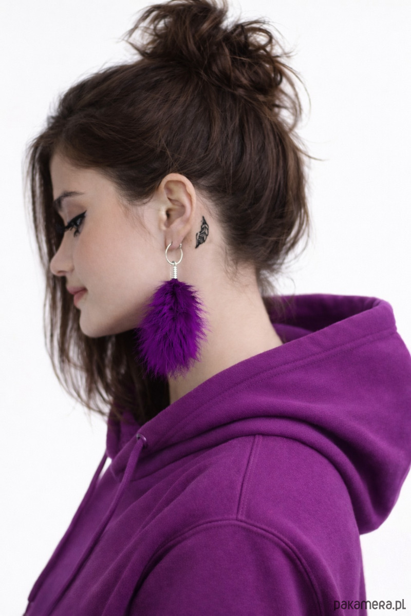 Kolczyki magenta zostały wykonane ręcznie z naturalnie farbowanych pięknych piór marabuta. Połączenie delikatności piór z mocnym fuksjowym kolorem tworzy nietuzinkowy, jednoczenie elegancki i bardzo kobiecy dodatek. Pasują do codziennych i wieczorowych okazji.