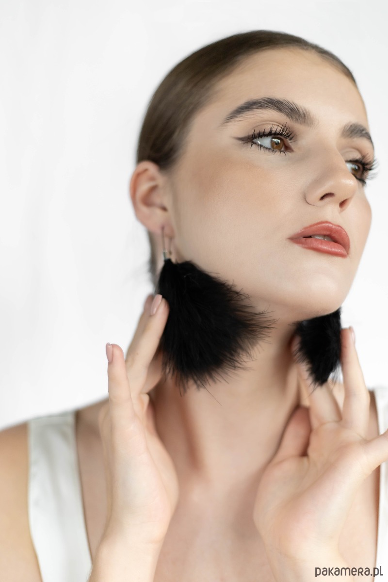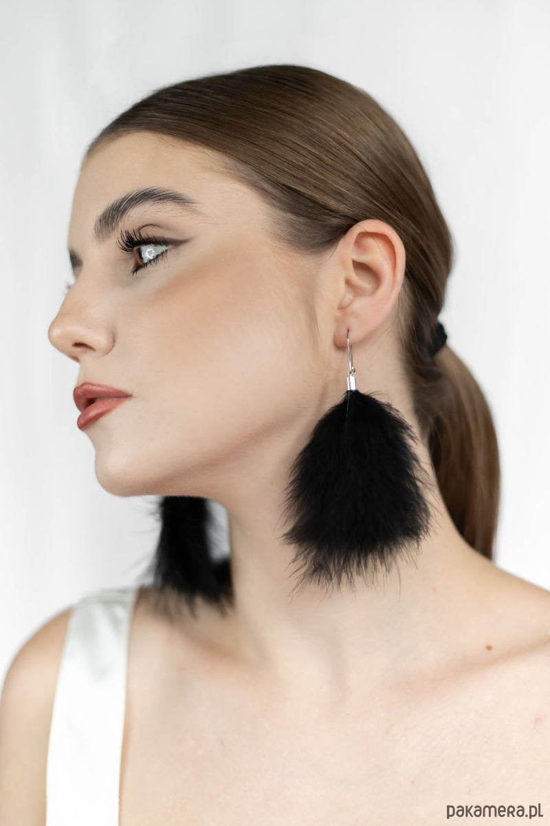 Kolczyki onyks zostały wykonane ręcznie z naturalnie farbowanych pięknych piór marabuta. Połączenie delikatności piór z ich głębokim kolorem tworzy nietuzinkowy, jednoczenie elegancki i bardzo kobiecy dodatek. Pasują do codziennych i wieczorowych okazji.