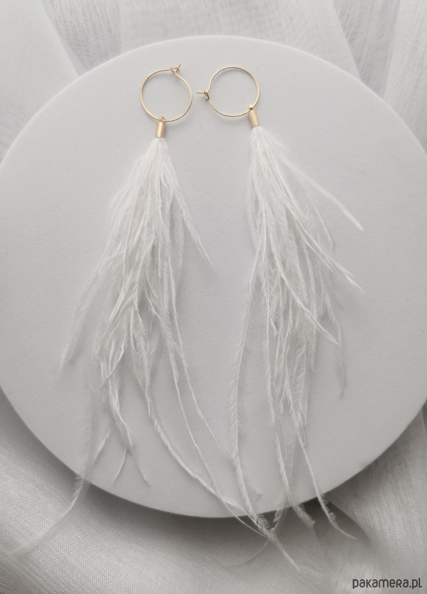 Kolczyki zostały wykonane z naturalnych strusich piór. Mimo pozornej delikatności piór wykonane z nich kolczyki są niezwykle trwałe i wytrzymałe. Idealne na specjalne okazje, szczególnie na ślub.