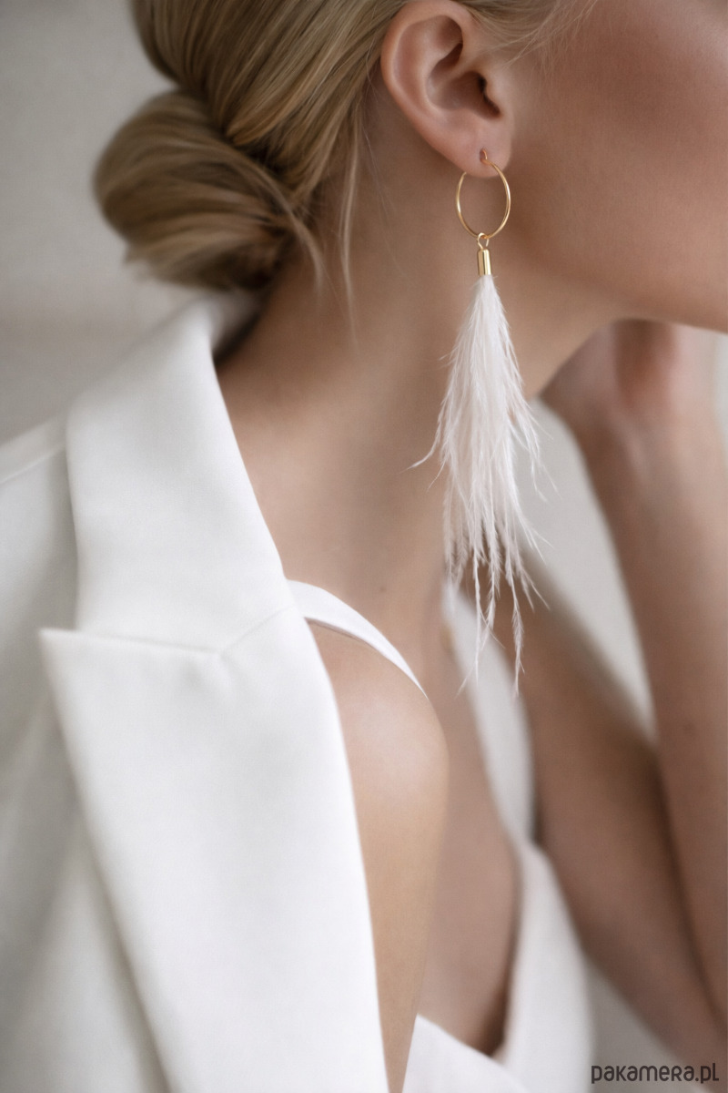 Kolczyki zostały wykonane z naturalnych strusich piór. Mimo pozornej delikatności piór wykonane z nich kolczyki są niezwykle trwałe i wytrzymałe. Idealne na specjalne okazje, szczególnie na ślub.