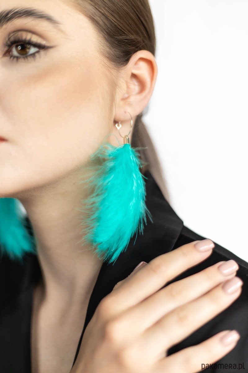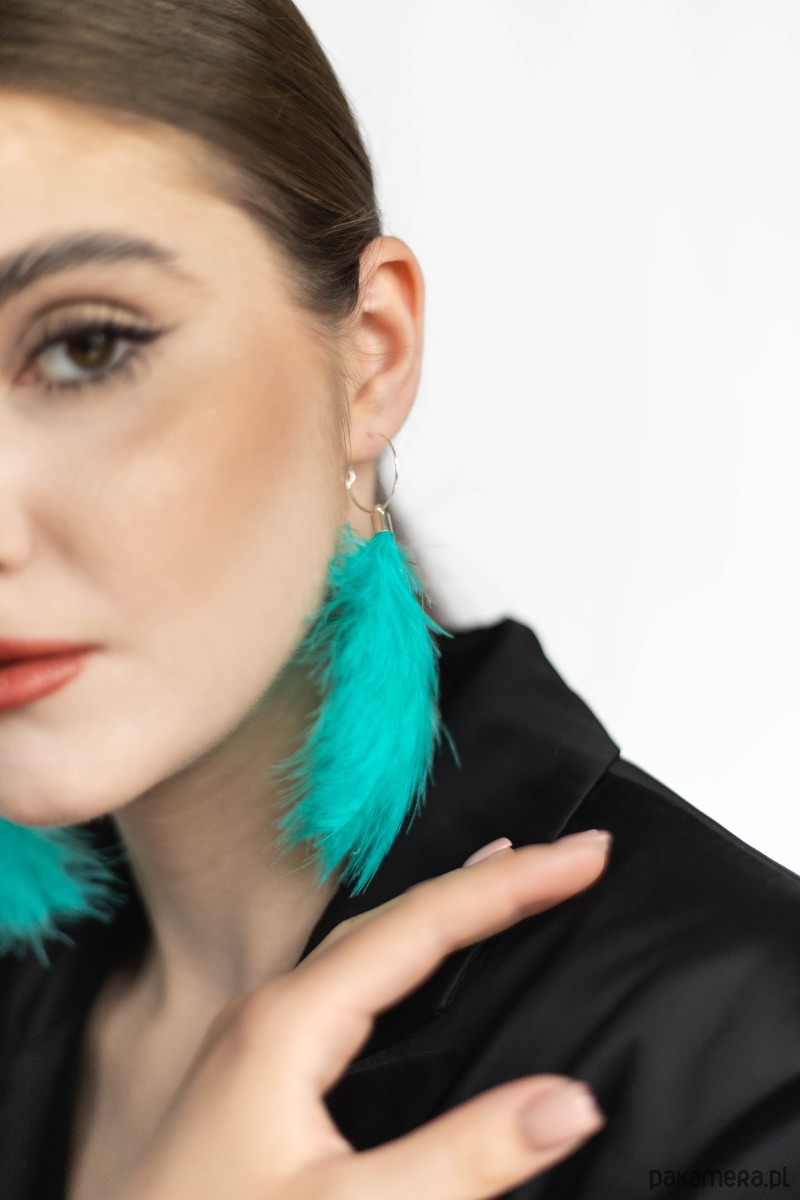 Kolczyki szmaragd zostały wykonane ręcznie z naturalnie farbowanych pięknych piór marabuta. Połączenie delikatności piór z mocnym zielonym kolorem tworzy nietuzinkowy, jednoczenie elegancki i bardzo kobiecy dodatek. Pasują do codziennych i wieczorowych okazji.