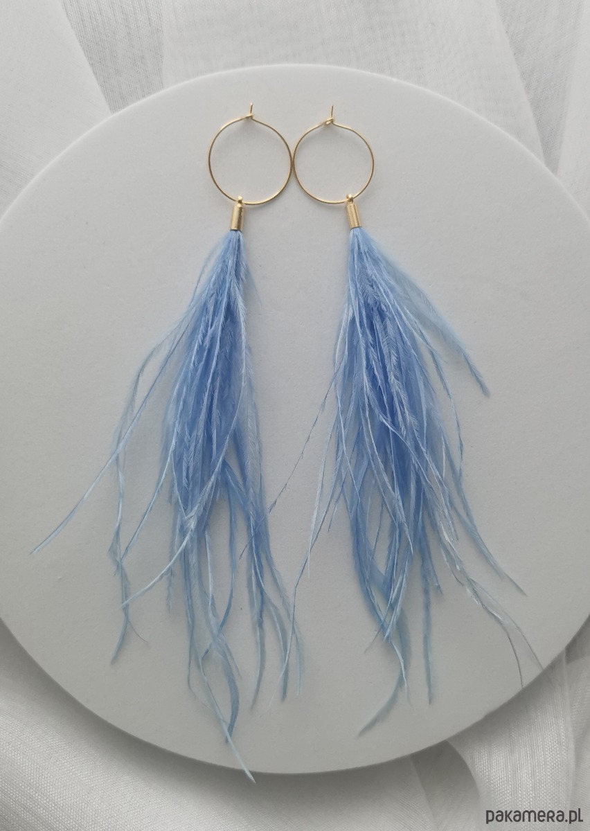 Kolczyki zostały wykonane z naturalnych strusich piór, naturalnie barwionych na bardzo delikatny błękitny kolor.