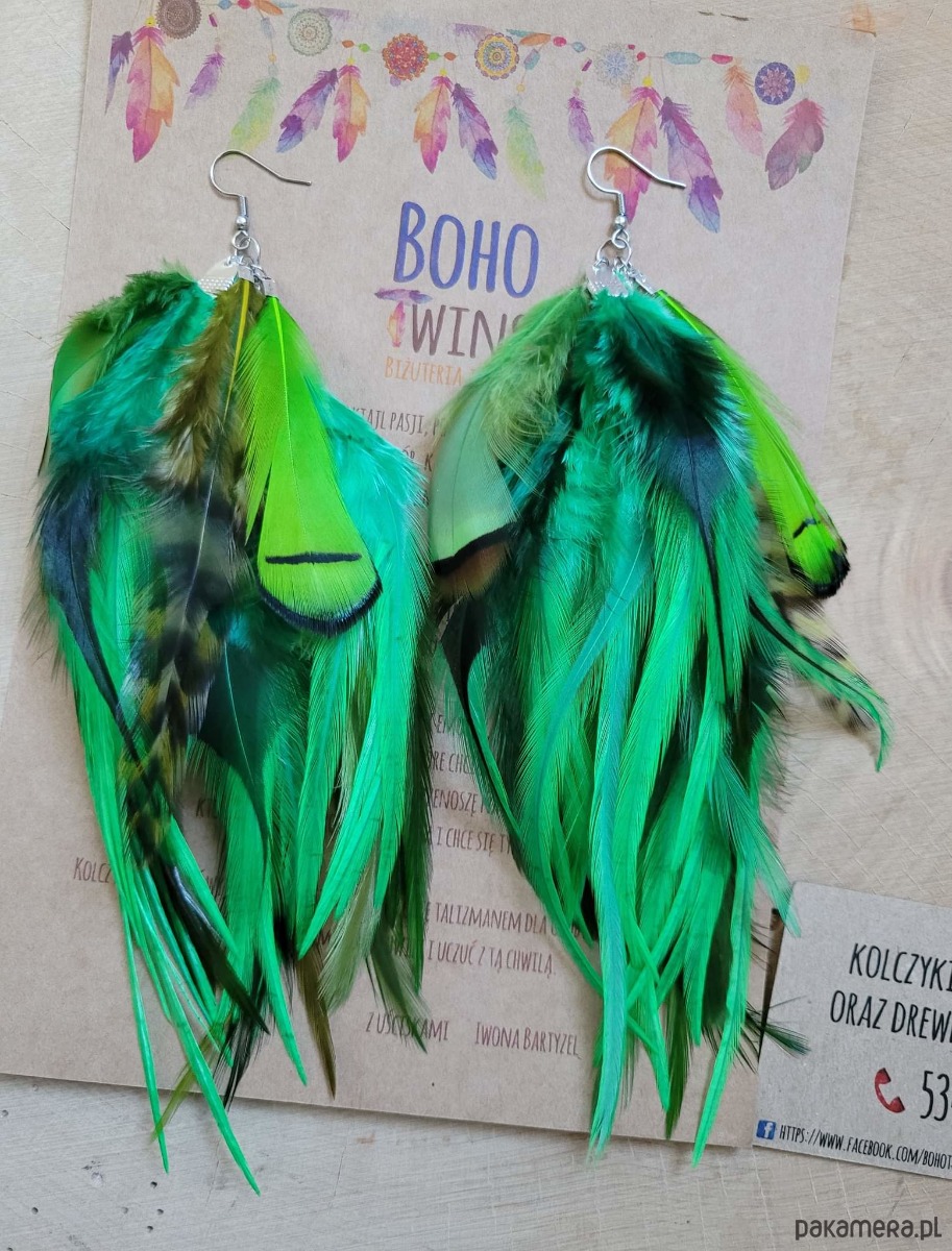 Kolczyki z piór, zielone