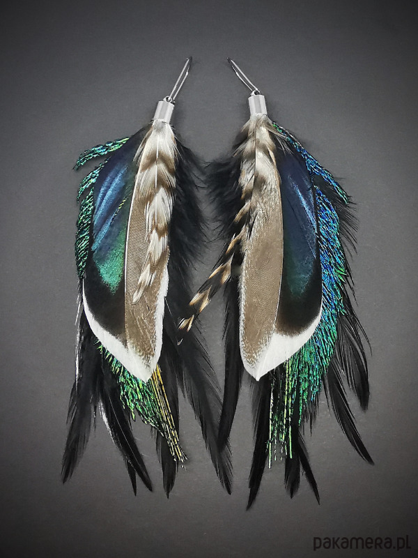 Kolczyki Ignis (łac. ogień) zostały wykonane ręcznie z wyselekcjonowanych rzadkich i niezwykle pięknych naturalnych piór. Wykorzystują kontrast czarnych piór z opalizującymi na niebiesko, zielono i granatowo piórami szyjnymi i bocznymi pawi oraz bocznym piórkiem kaczym. Tworzą ożywiający, nowoczesny i zwracający uwagę dodatek.