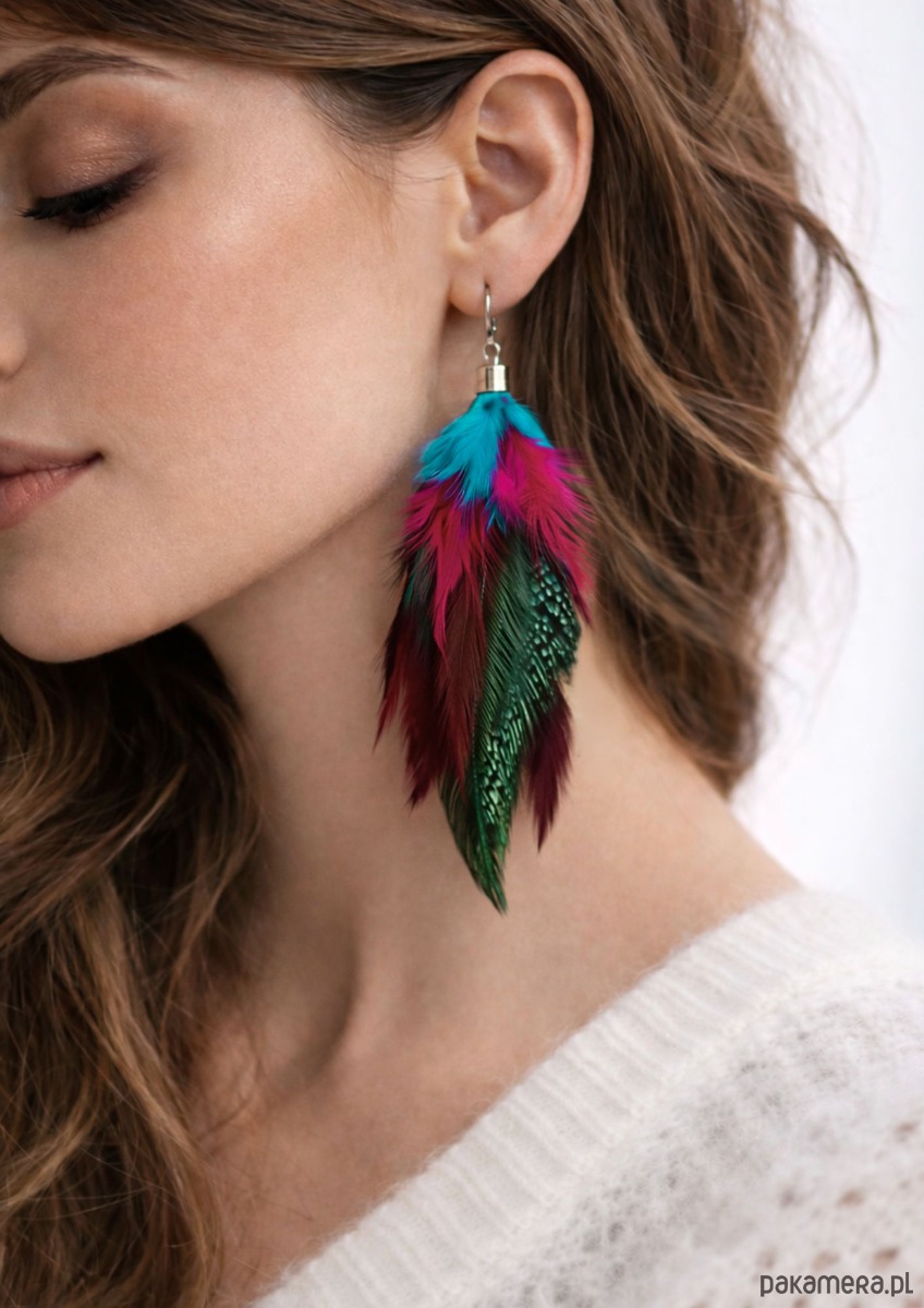 Kolczyki są wykonywane ręcznie, nie ma na świecie dwóch takich samych piórek, dlatego ich układ w otrzymanym zamówieniu może się delikatnie różnić od tych na zdjęciu – zawsze jednak tworzę kolczyki tak, aby były jak najbardziej zbliżone do prezentowanego wzoru.