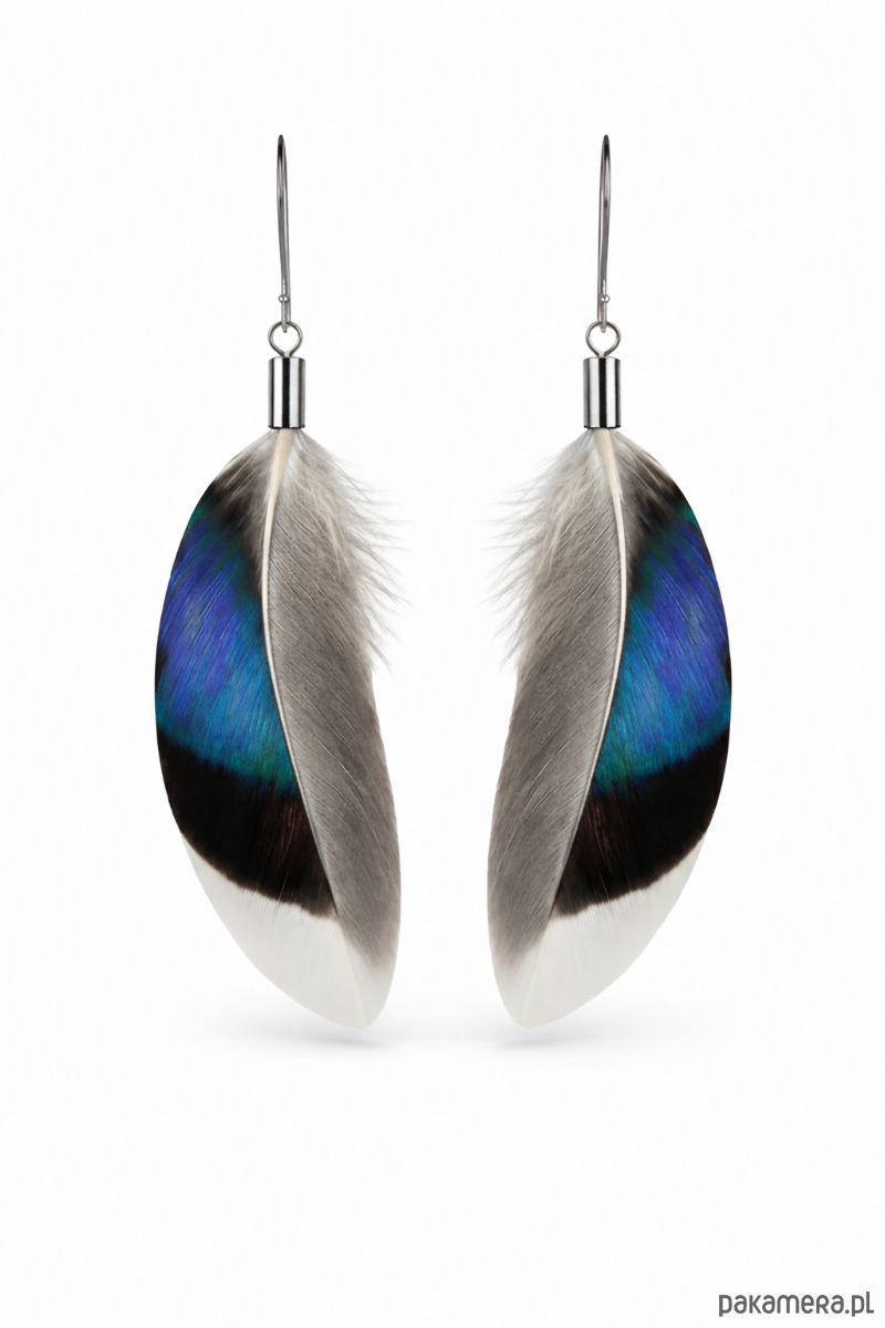 Kolczyki Irides (łac. tęcza, połysk, migotanie barw) wykonane są z wyselekcjonowanych naturalnych piór o hipnotyzującej, opalizującej barwie. Głęboki kobalt i szmaragd zachwycają swoją intensywnością i świetlistością.
