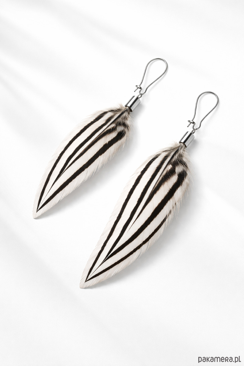 Kolczyki Linea zostały wykonane z wyselekcjonowanych, naturalnych piór bażanta srebrzystego, cenionych za swój graficzny rysunek i subtelną elegancję. Charakterystyczne, kontrastowe pasy tworzą czystą, linearną formę, od której kolczyki wzięły swoją nazwę. Każde pióro zostało starannie dobrane, tak aby zachować lekkość, harmonię i naturalne piękno materiału.