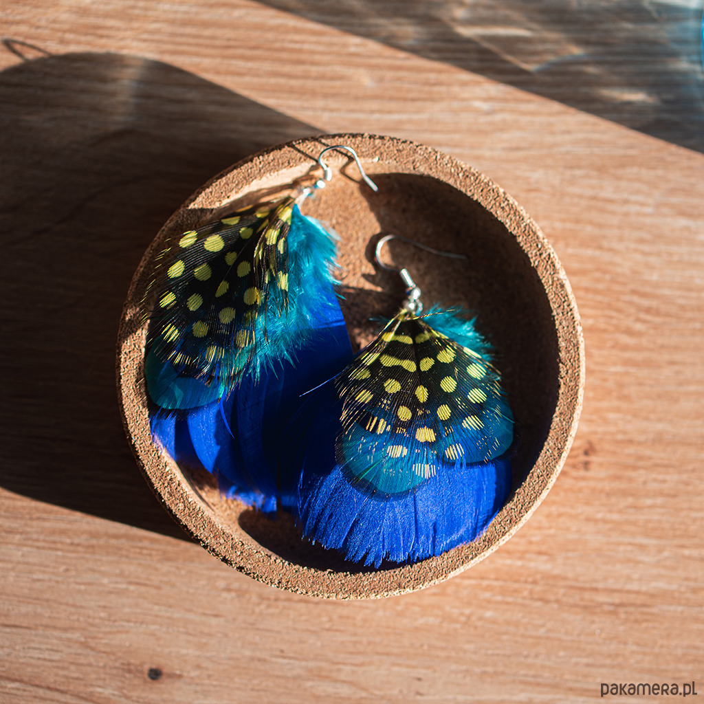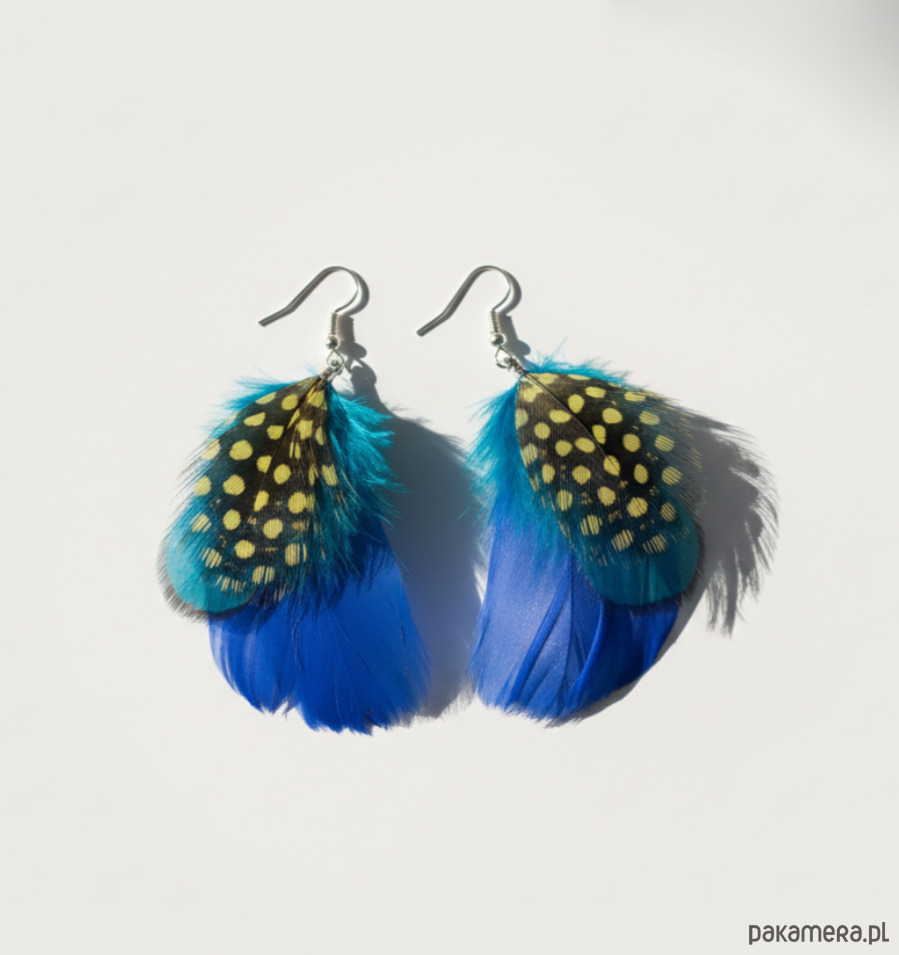 Dodaj odrobinę naturalnego piękna do swojego wyglądu, wybierając te urocze kolczyki z piór w odcieniach niebieskiego i piórkiem perliczki w kropki. Bądź pewna, że staną się one nieodłącznym elementem Twojej biżuteryjnej kolekcji, dodając jej delikatności i wyjątkowości.