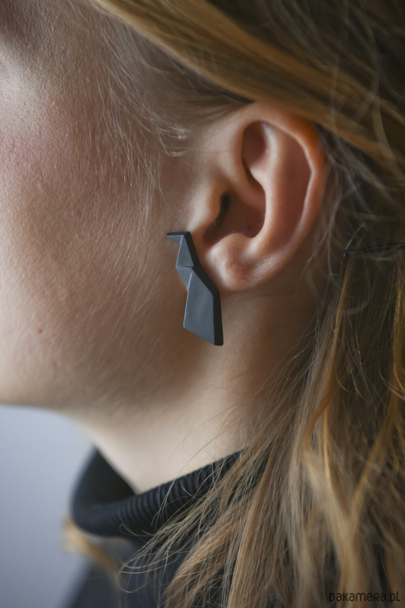Porcelanowe ręcznie robione kolczyki w kształcie pawia inspirowane tradycyjną japońską sztuką Origami.