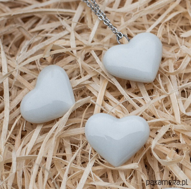 Porcelanowe ręcznie robione kolczyki w kształcie serca.