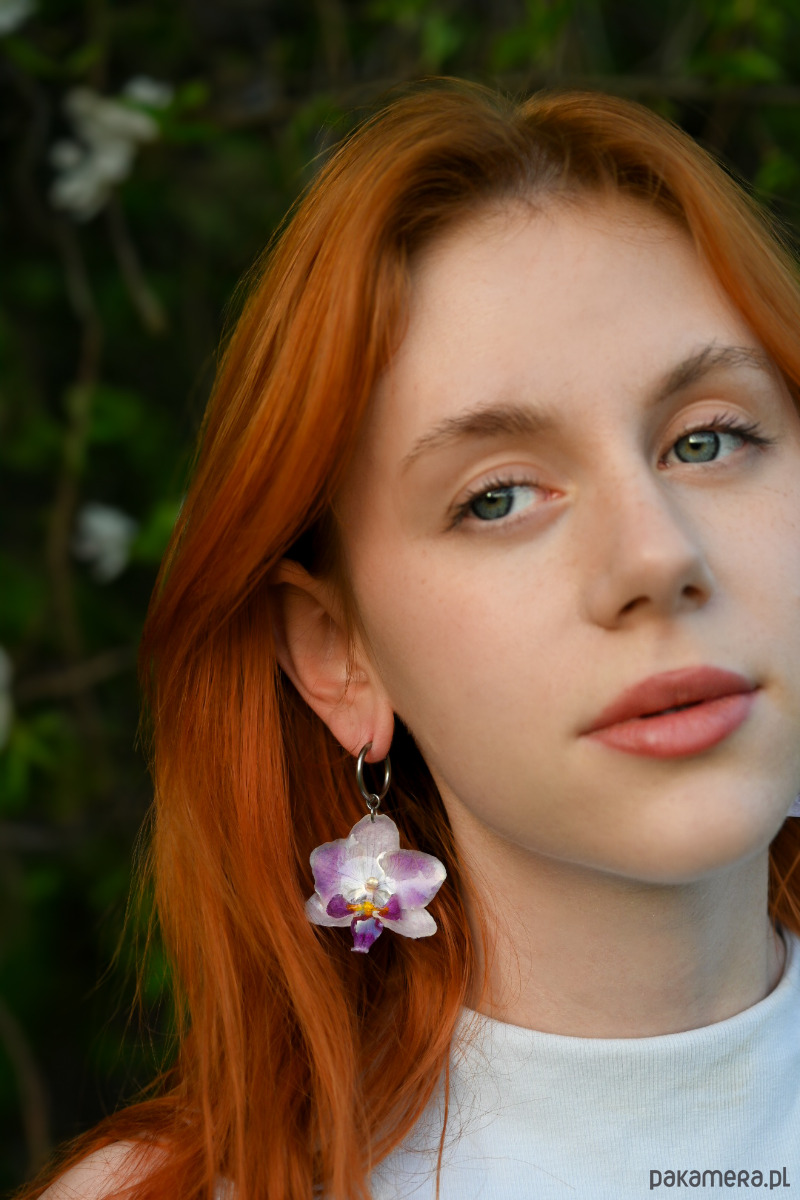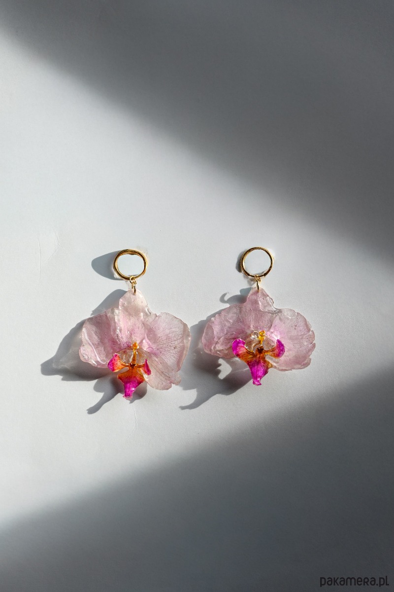 Kolczyki z prawdziwą orchideą w żywicy kwiaty biżuteria