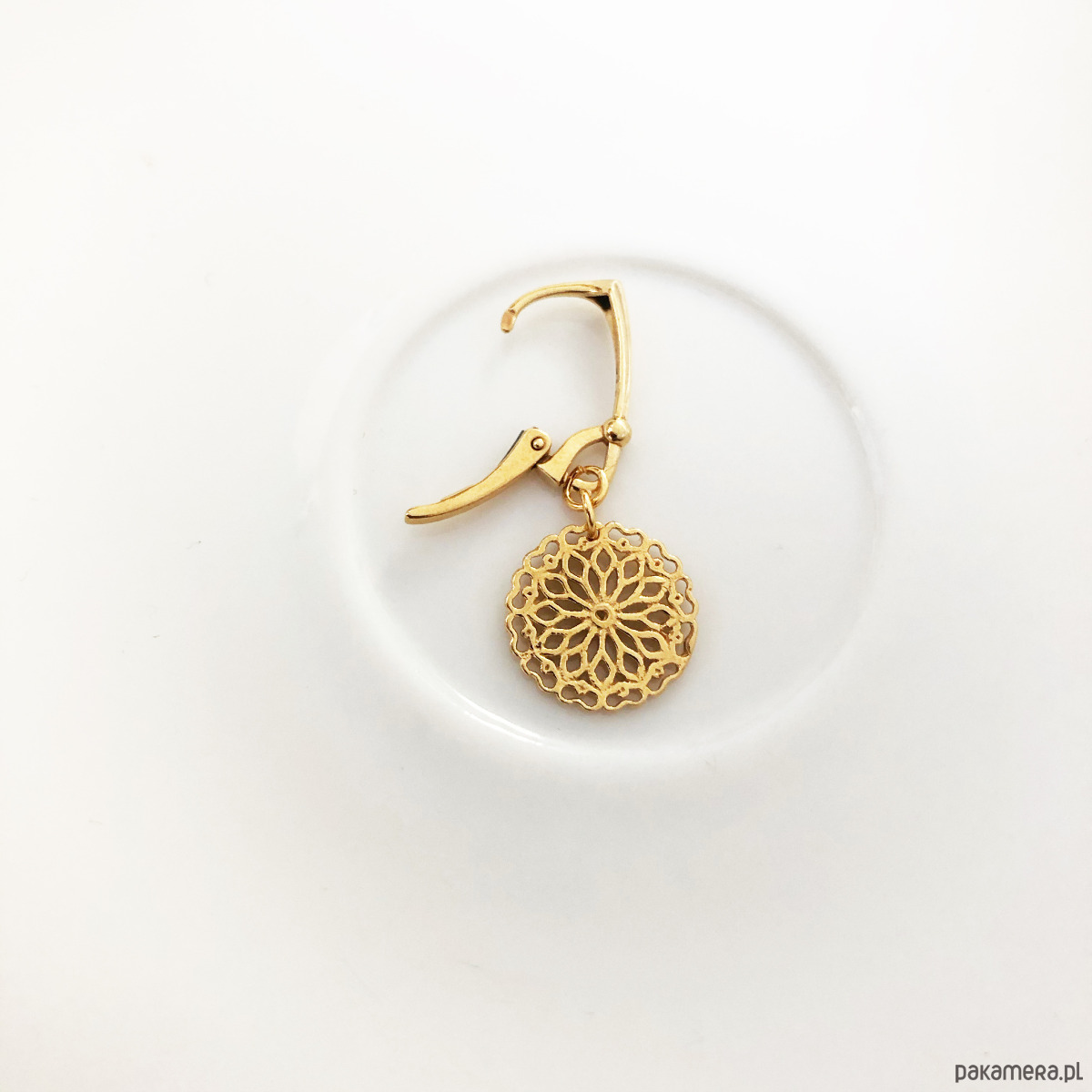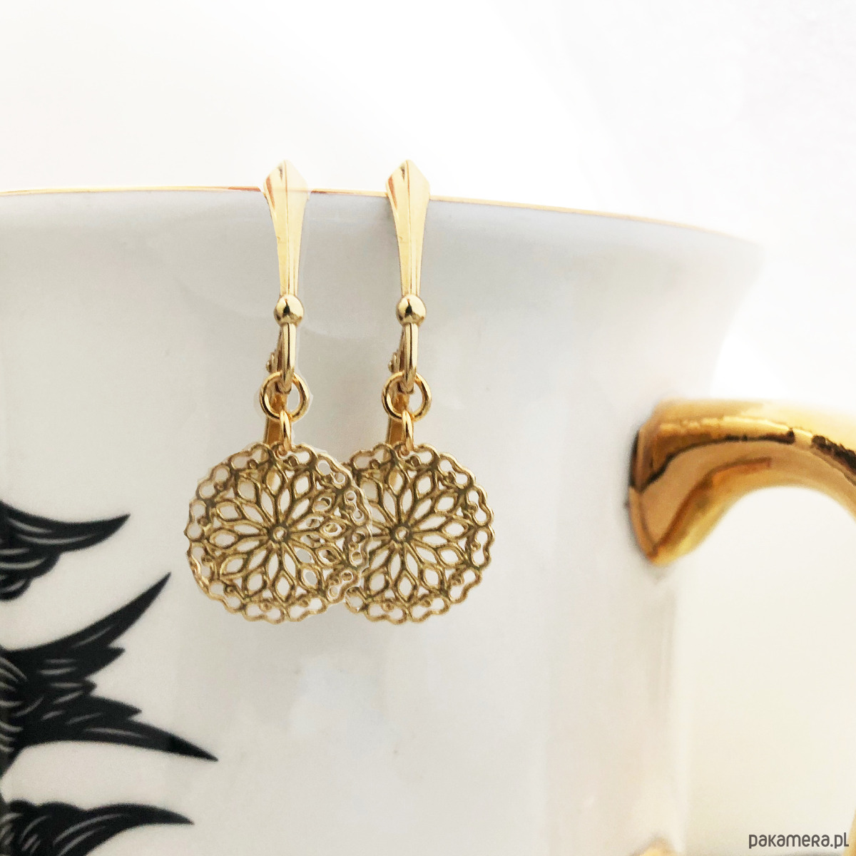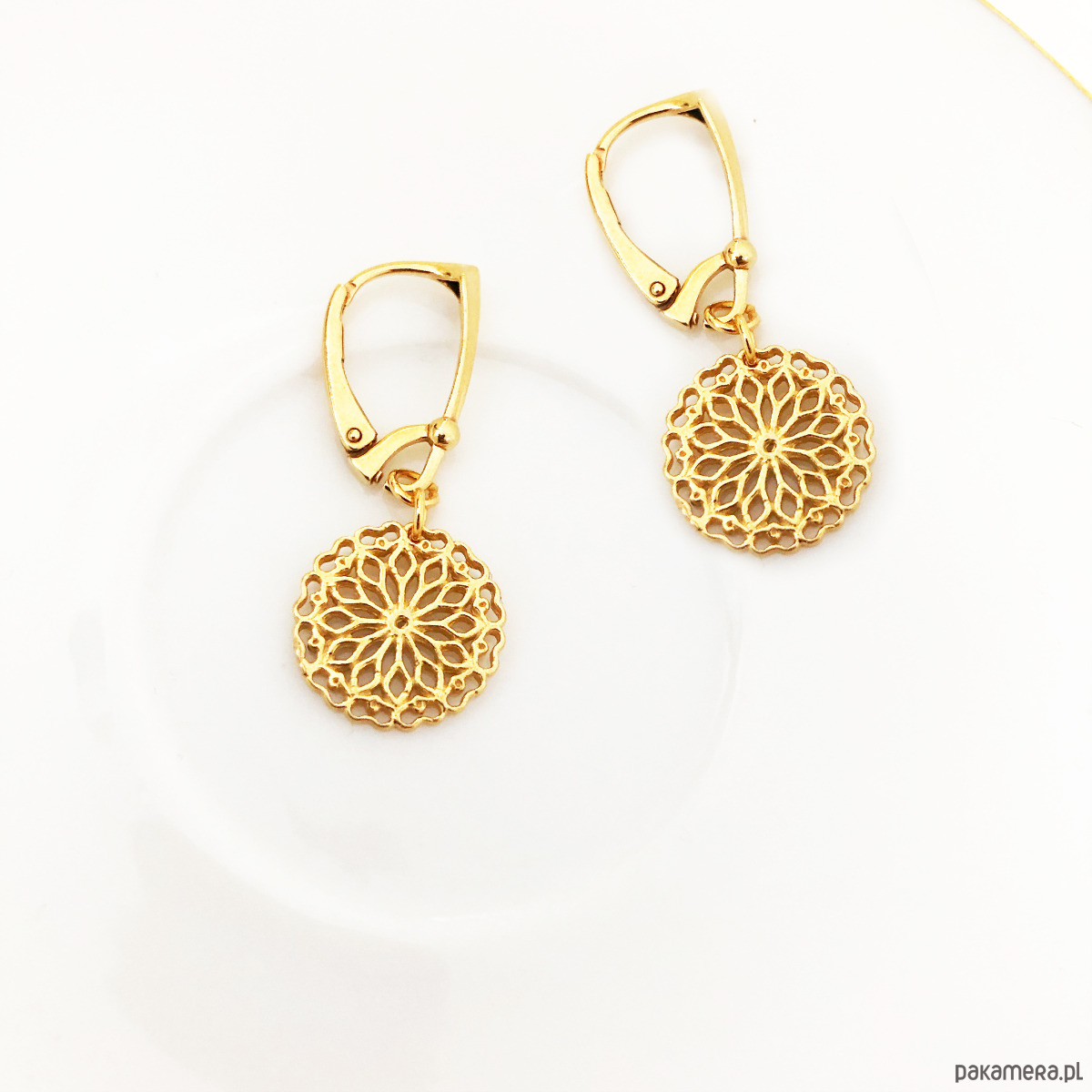 Przepiękne unikatowe, efektowne kolczyki z filigranowymi rozetami, bardzo pięknie wykonanie, kobiece lekkie i wygodne w noszeniu. Wykonane z elementów ze srebra próby 925 złoconego 24 k złotem .