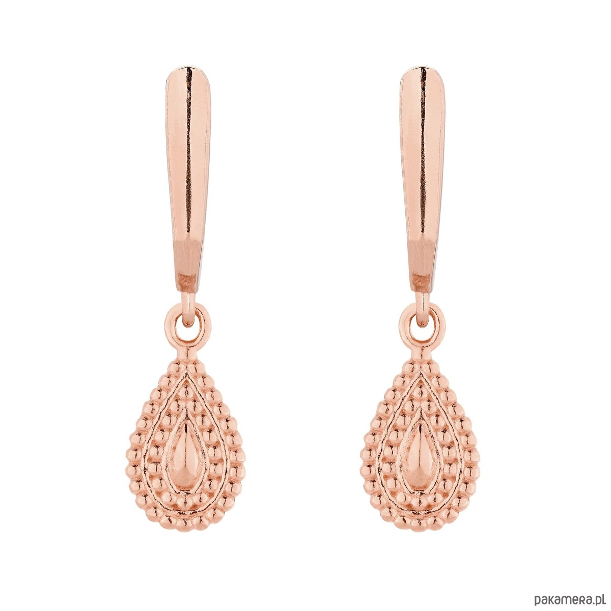 Złote kolczyki z łezkami. Zapinane na bigle angielskie. Całość wykonana ze srebra 925 powlekanego 18 karatowym różowym złotem.