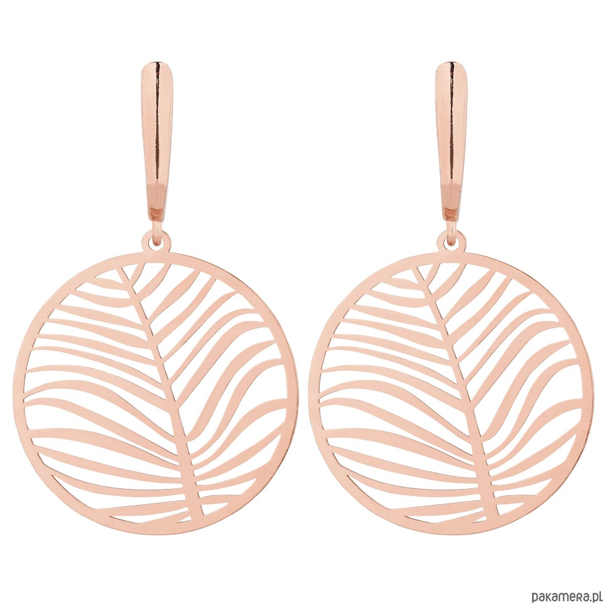 Złote kolczyki z dużą rozetą. Zapinane na bigle angielskie. Całość wykonana ze srebra 925 powlekanego 18 karatowym różowym złotem.